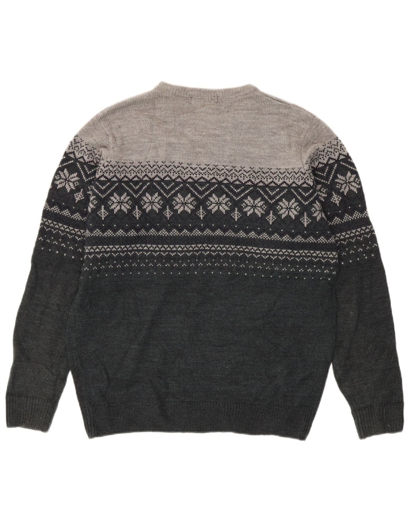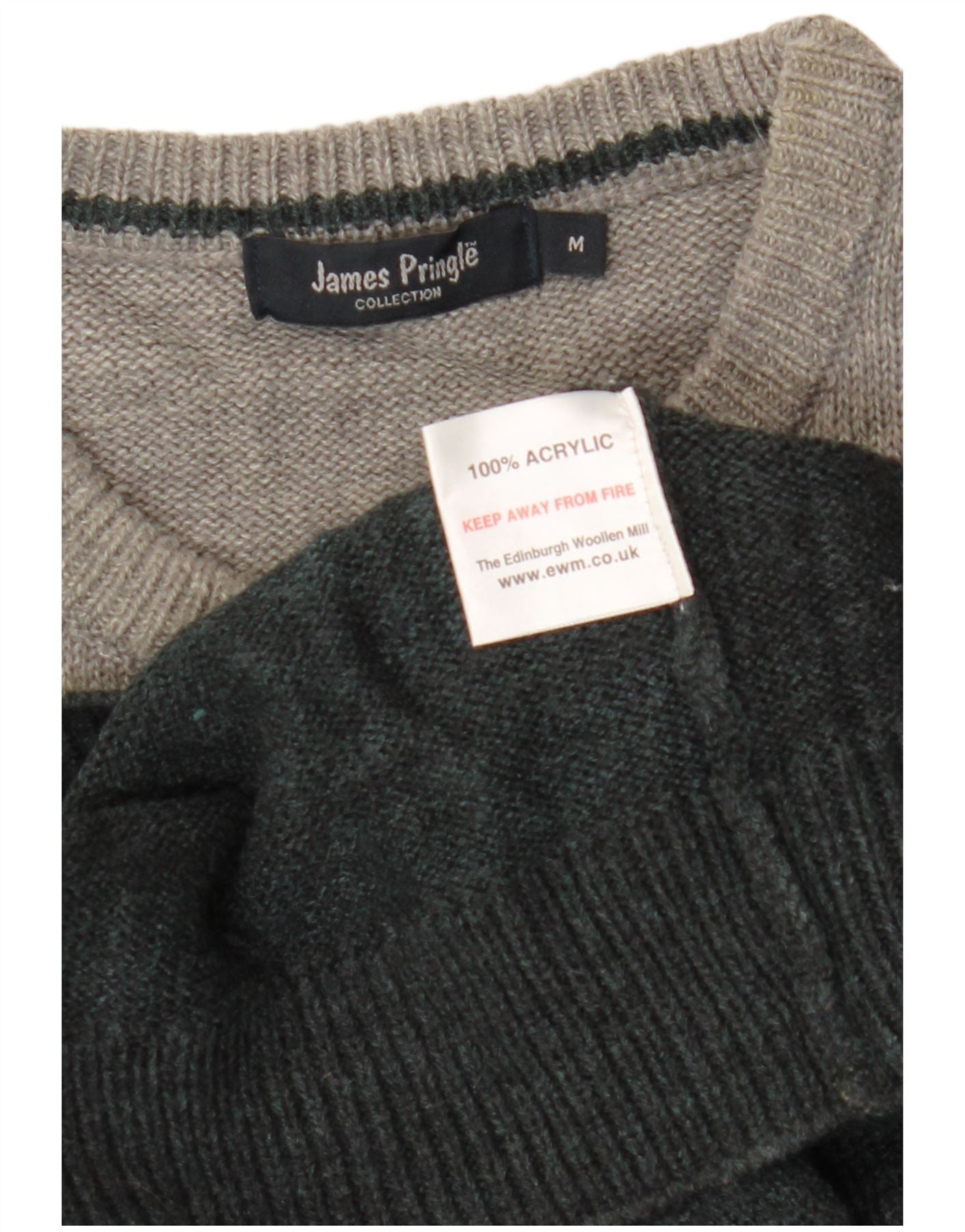 JAMES PRINGLE Mens Boat Neck Jumper Sweater Medium Grey Fair Isle Acrylic