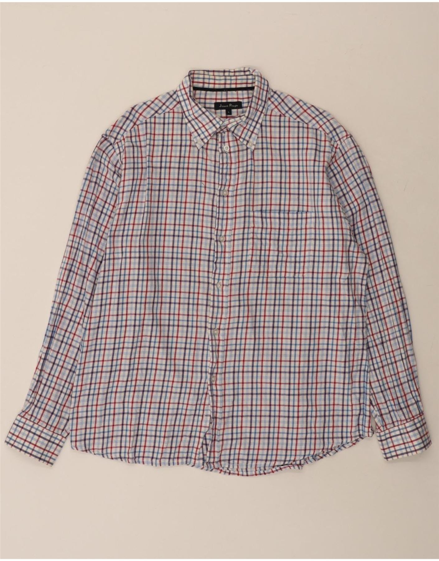 JAMES PRINGLE Mens Flannel Shirt Large Blue Check Cotton