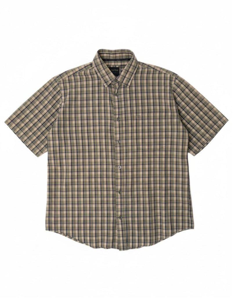 JAMES PRINGLE Mens Short Sleeve Shirt Medium Green Check Cotton