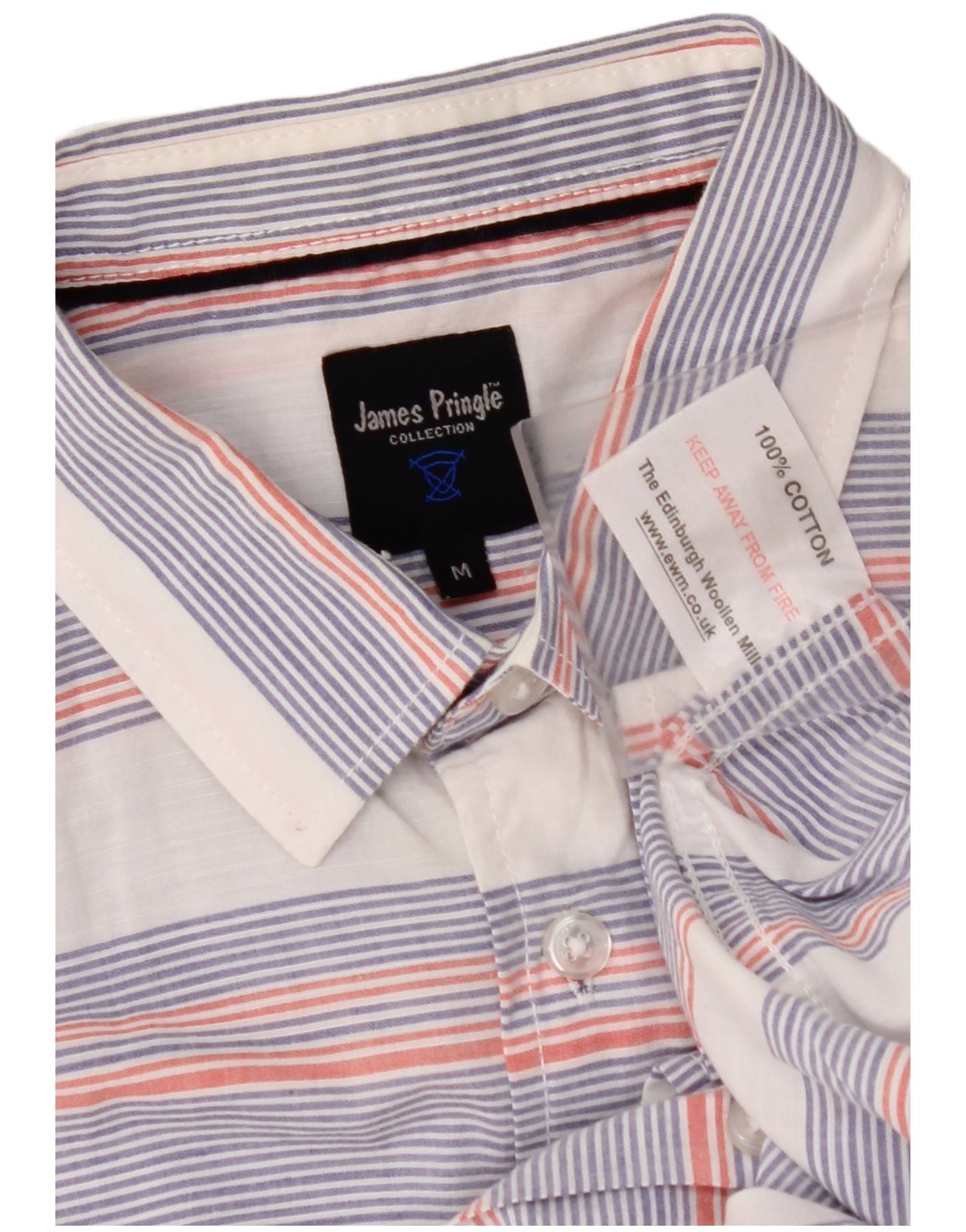 JAMES PRINGLE Mens Short Sleeve Shirt Medium White Striped Cotton