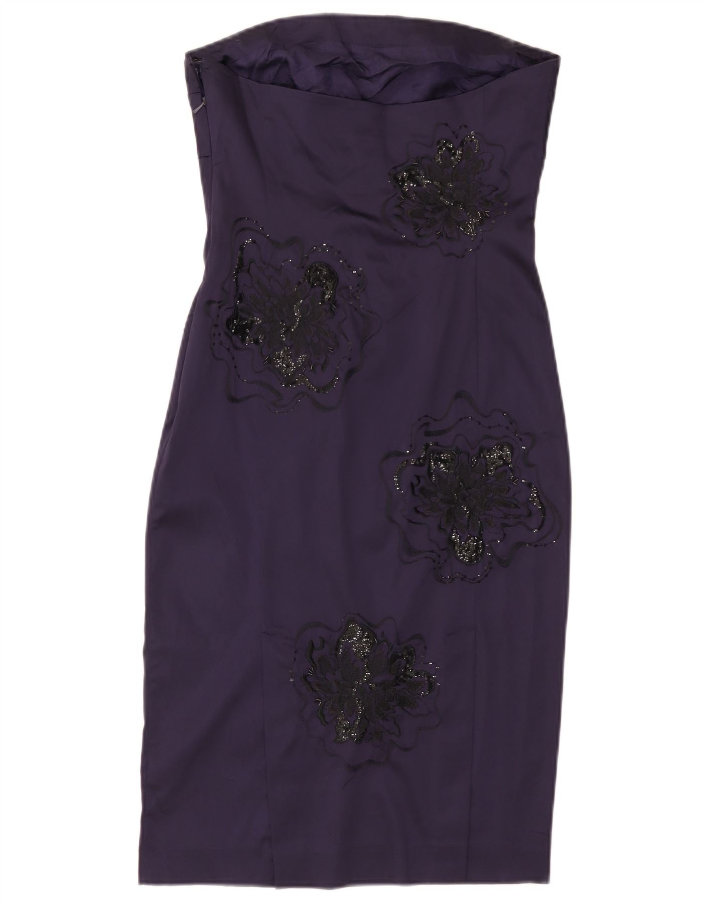 JANE NORMAN Womens Strapless Bodycon Dress UK 12 Medium Purple Floral