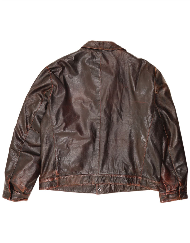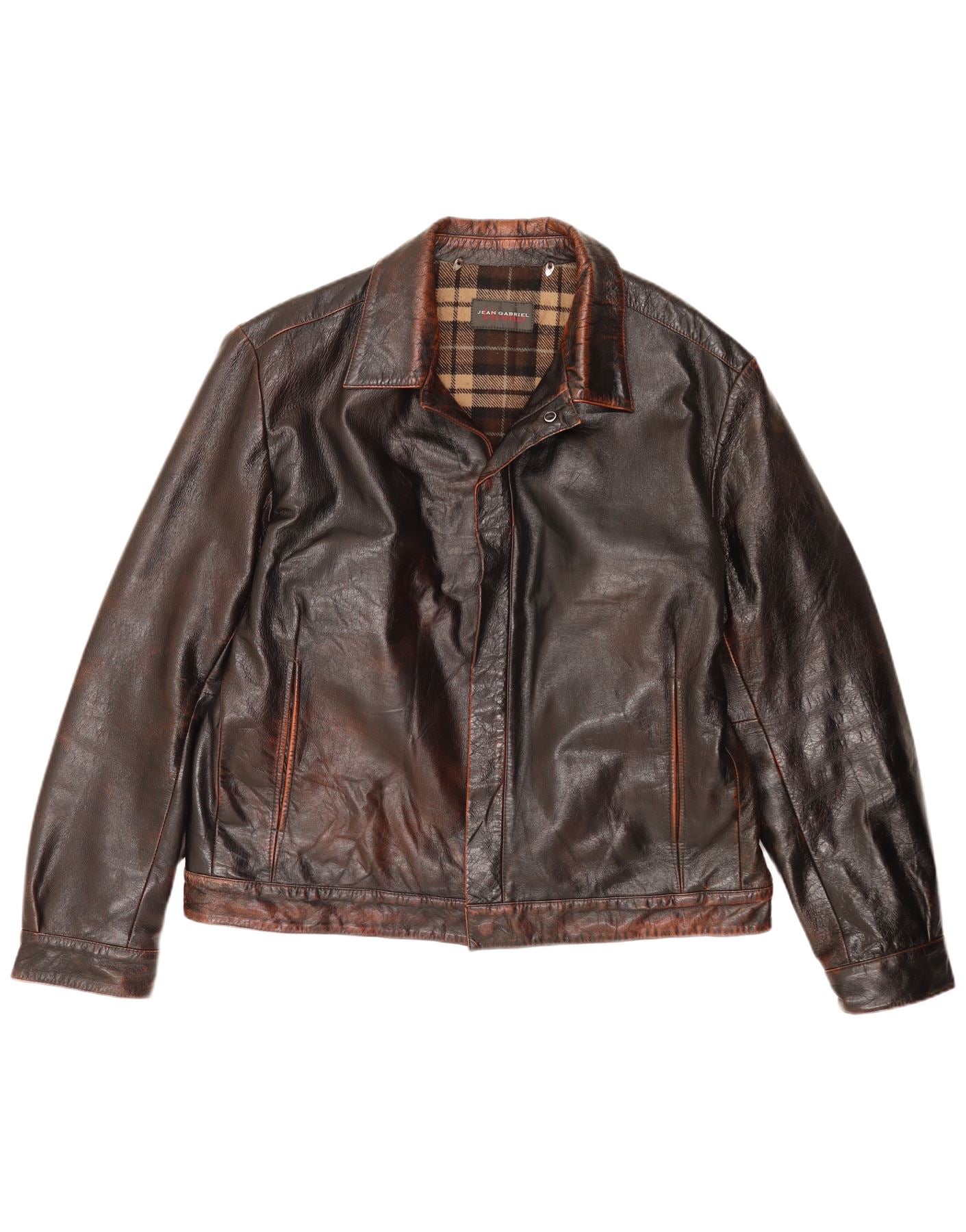 JEAN GABRIEL Mens Leather Jacket IT 58 4XL Brown Leather