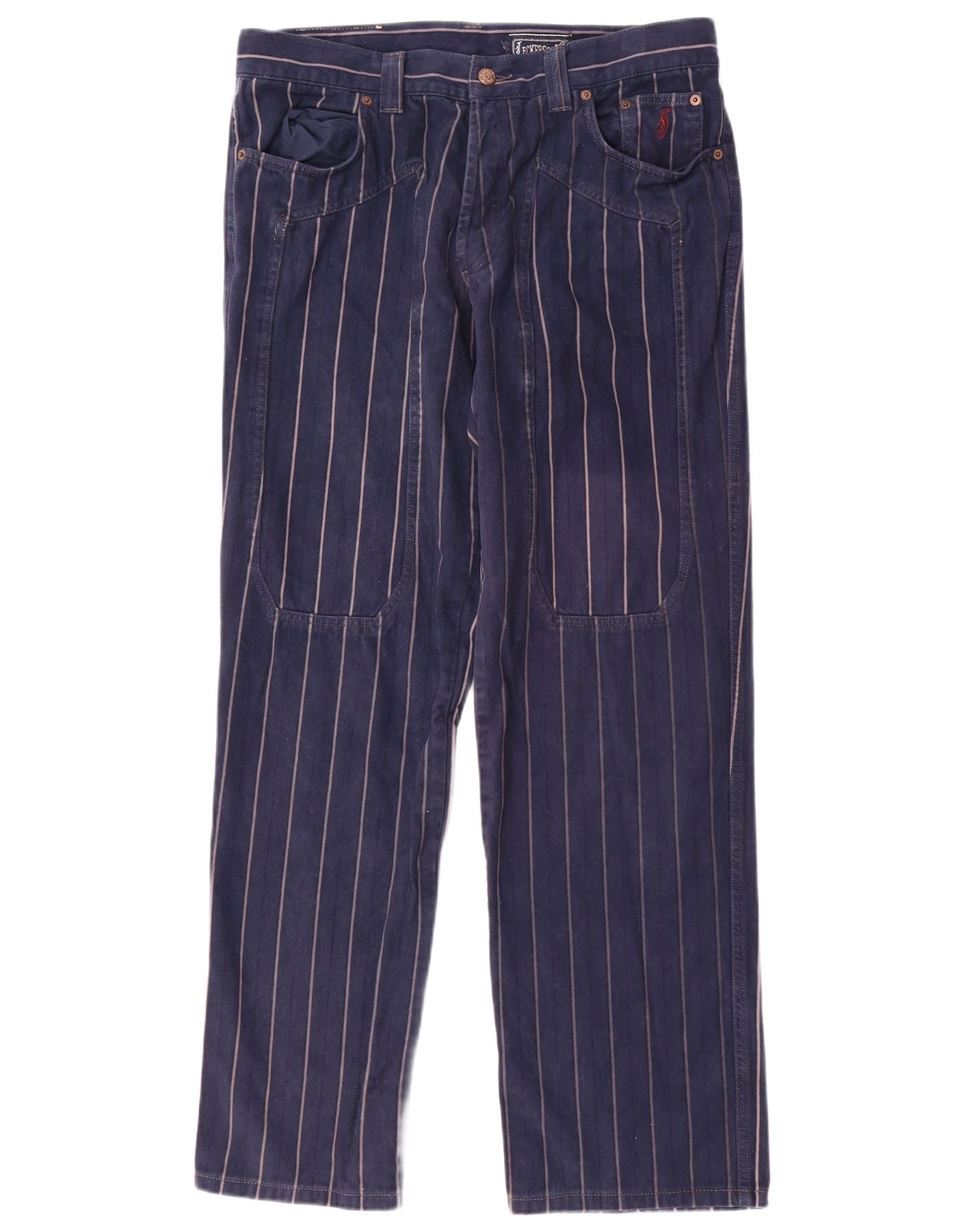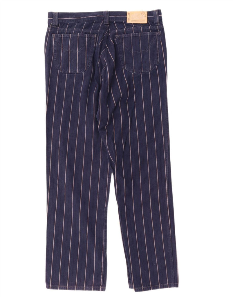 JECKERSON Mens Straight Casual Trousers W38 L32 Navy Blue Striped Cotton