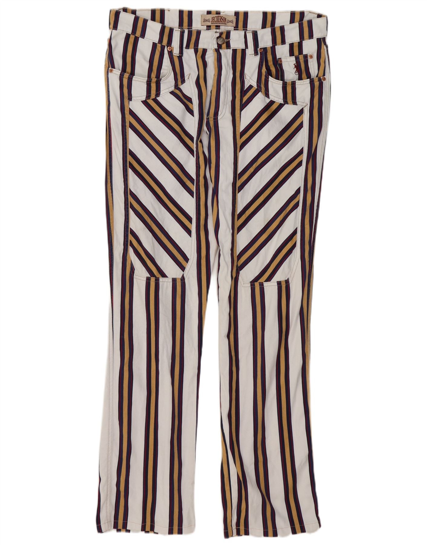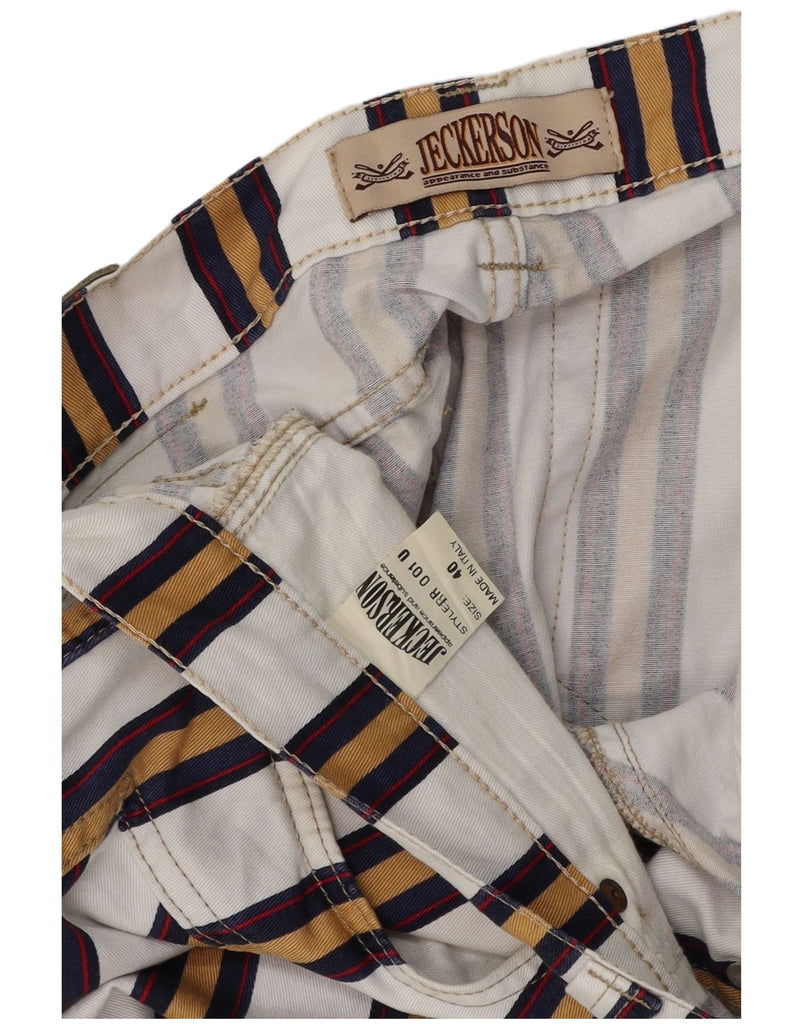 JECKERSON Mens Straight Casual Trousers W40 L32 White Striped Cotton