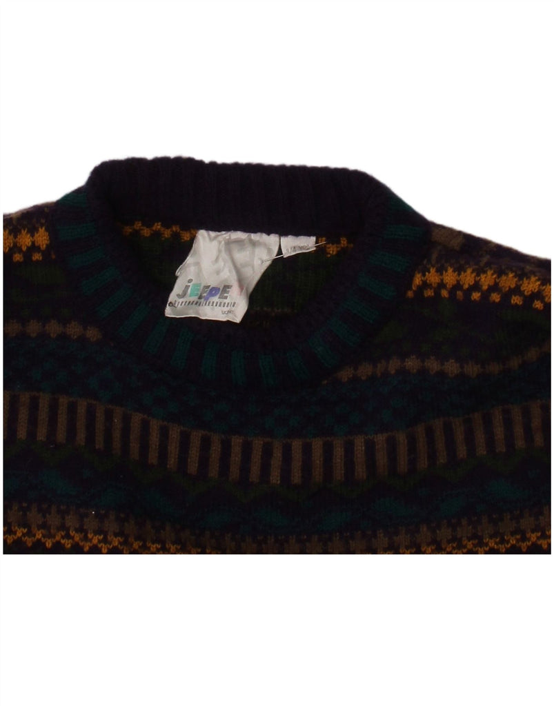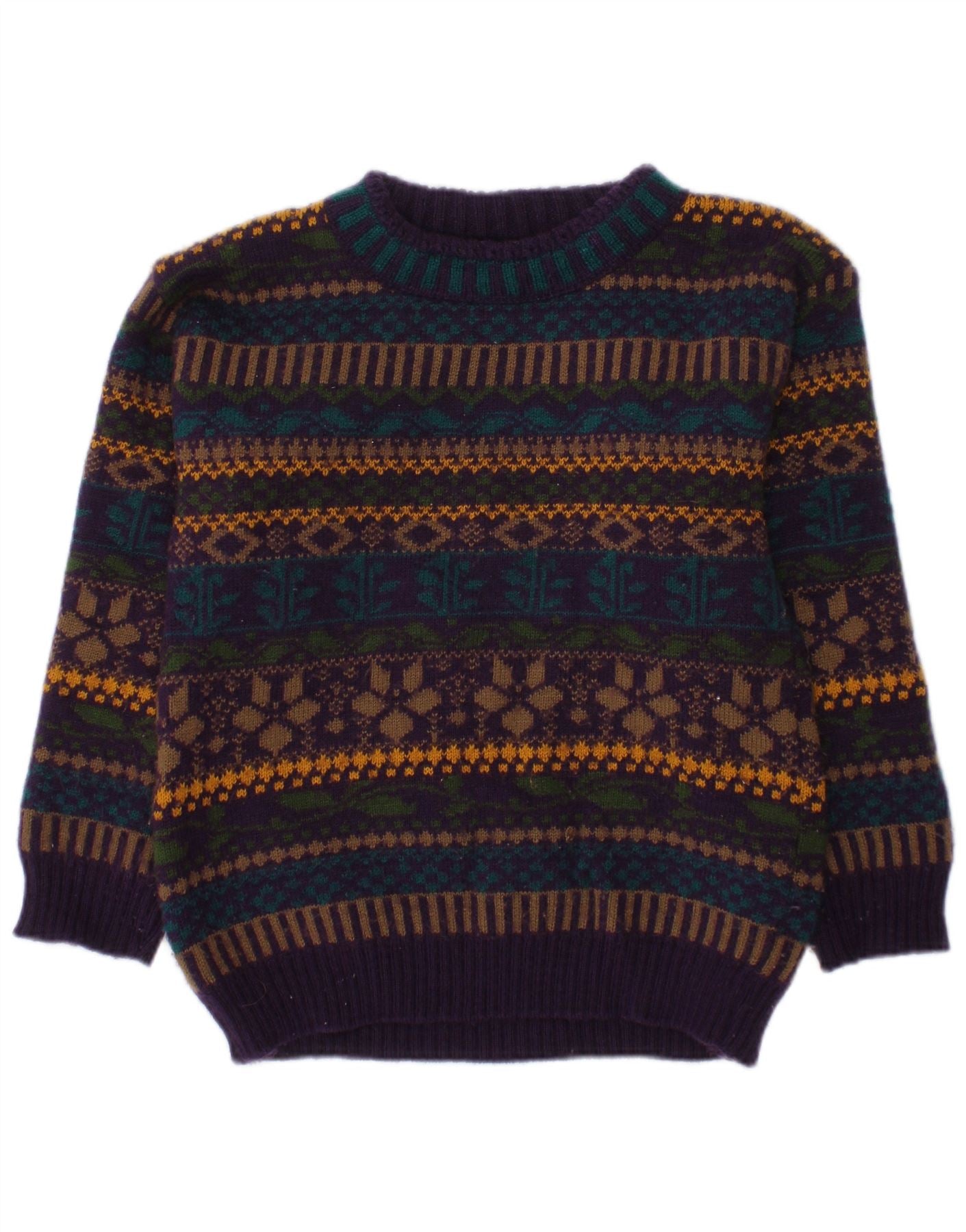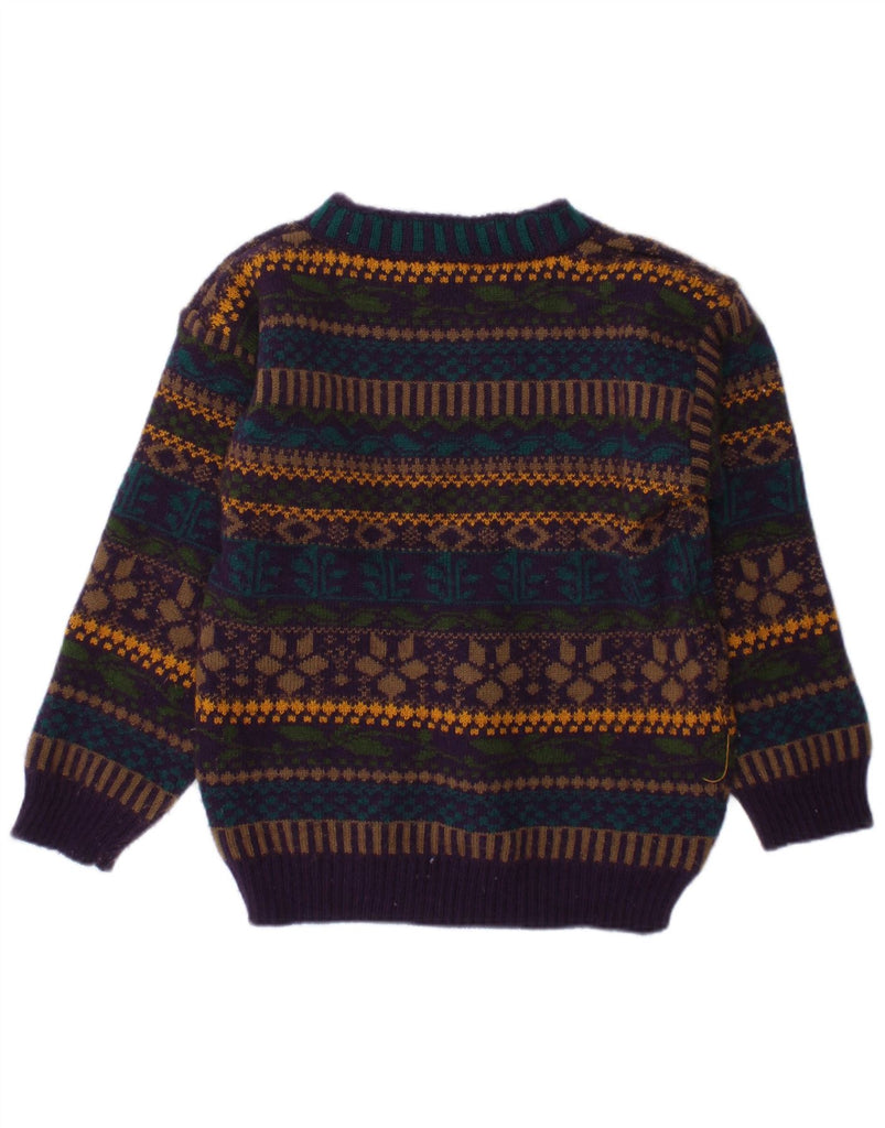 JEEPER Boys Crew Neck Jumper Sweater 3-4 Years Purple Fair Isle Acrylic