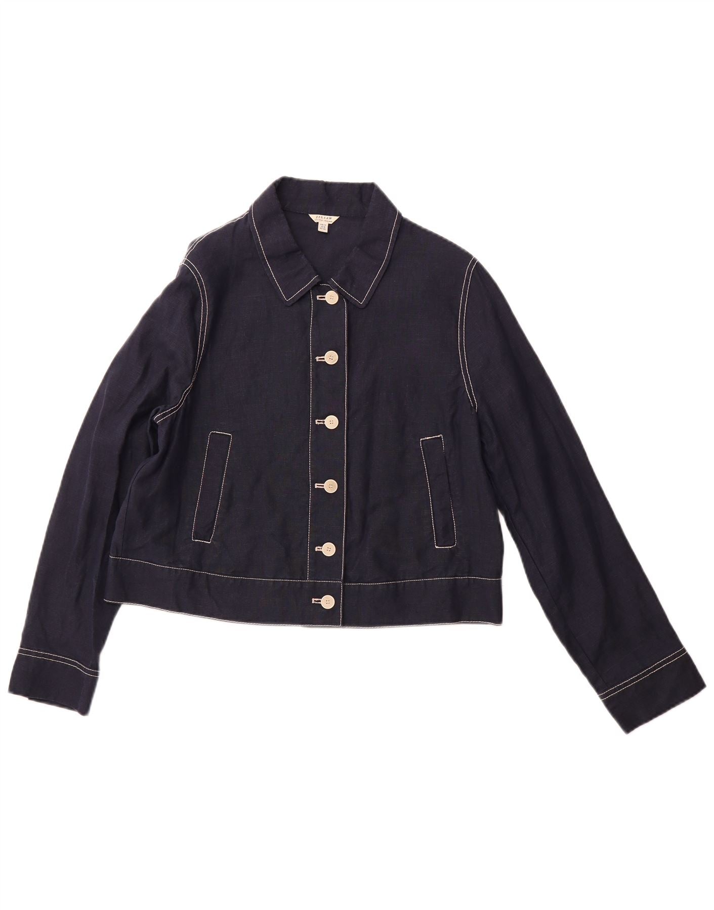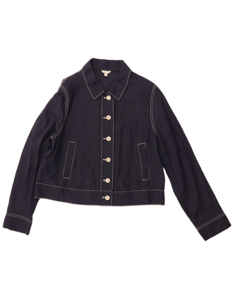 JIGSAW Womens Bomber Jacket UK 12 Medium Navy Blue Linen