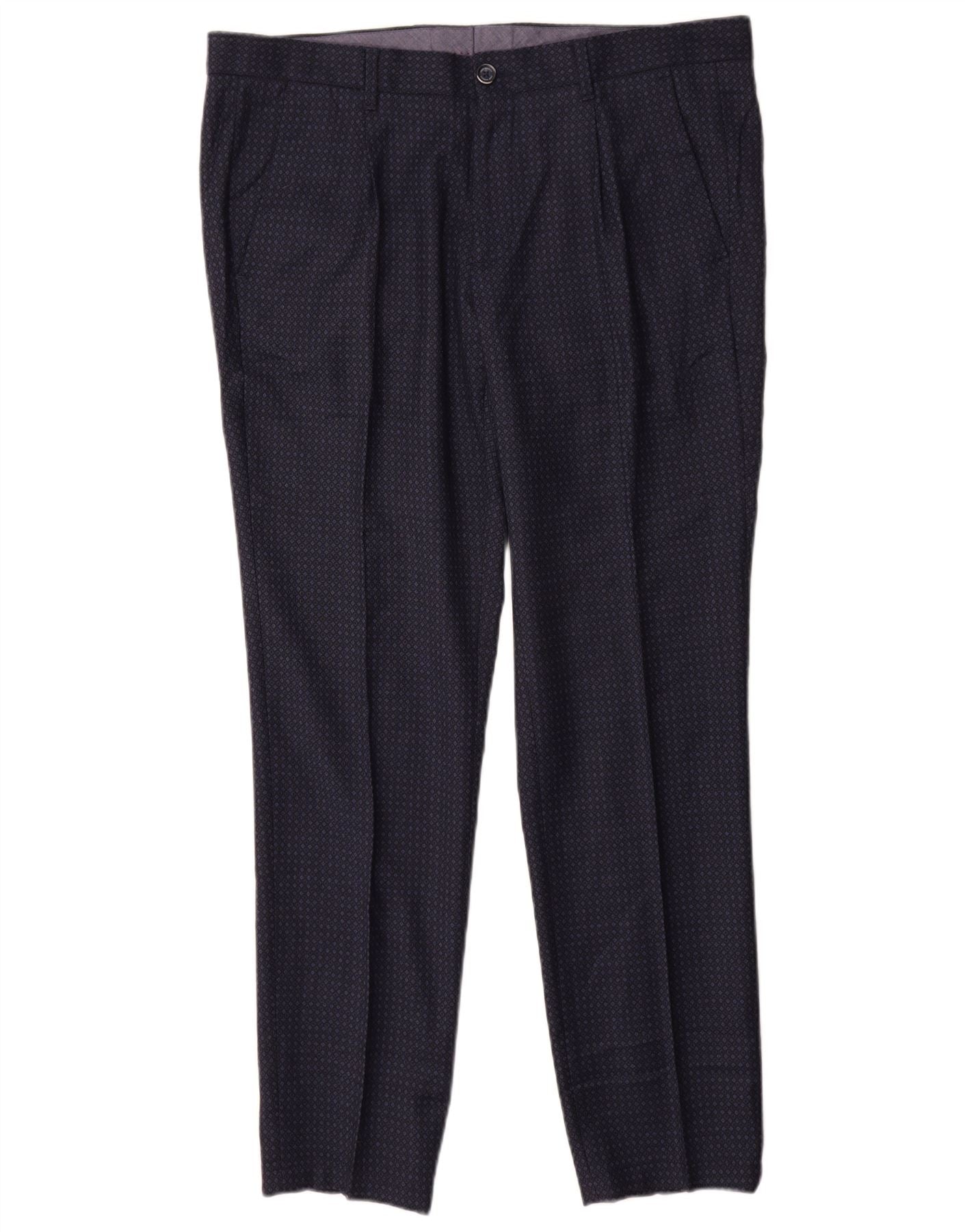 John Barritt Mens 2 Piece Suit IT 52/54 XL W36 L31 Navy Blue Geometric