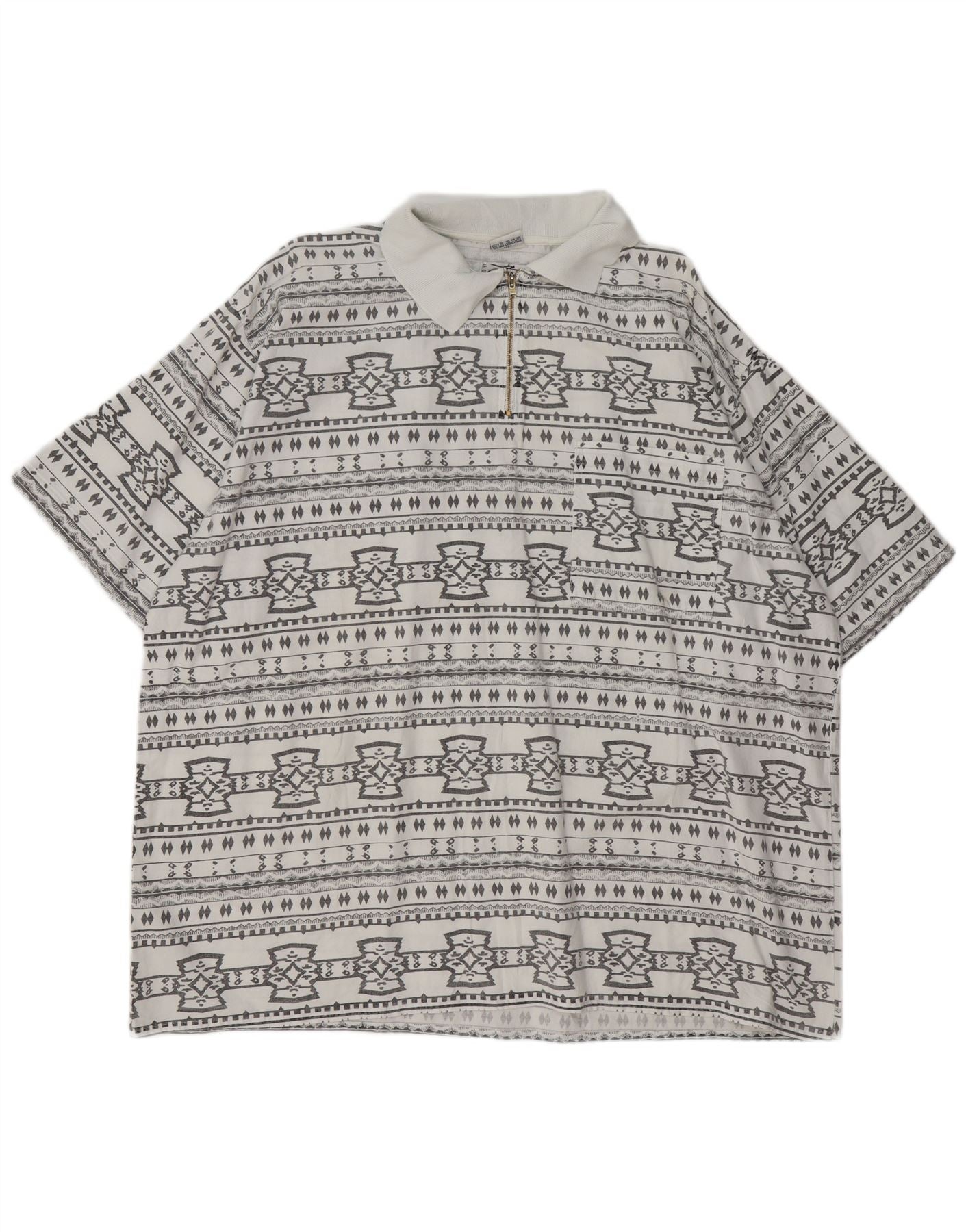 JOHN F GEE Mens Short Sleeve Pullover Shirt 2XL White Geometric Cotton