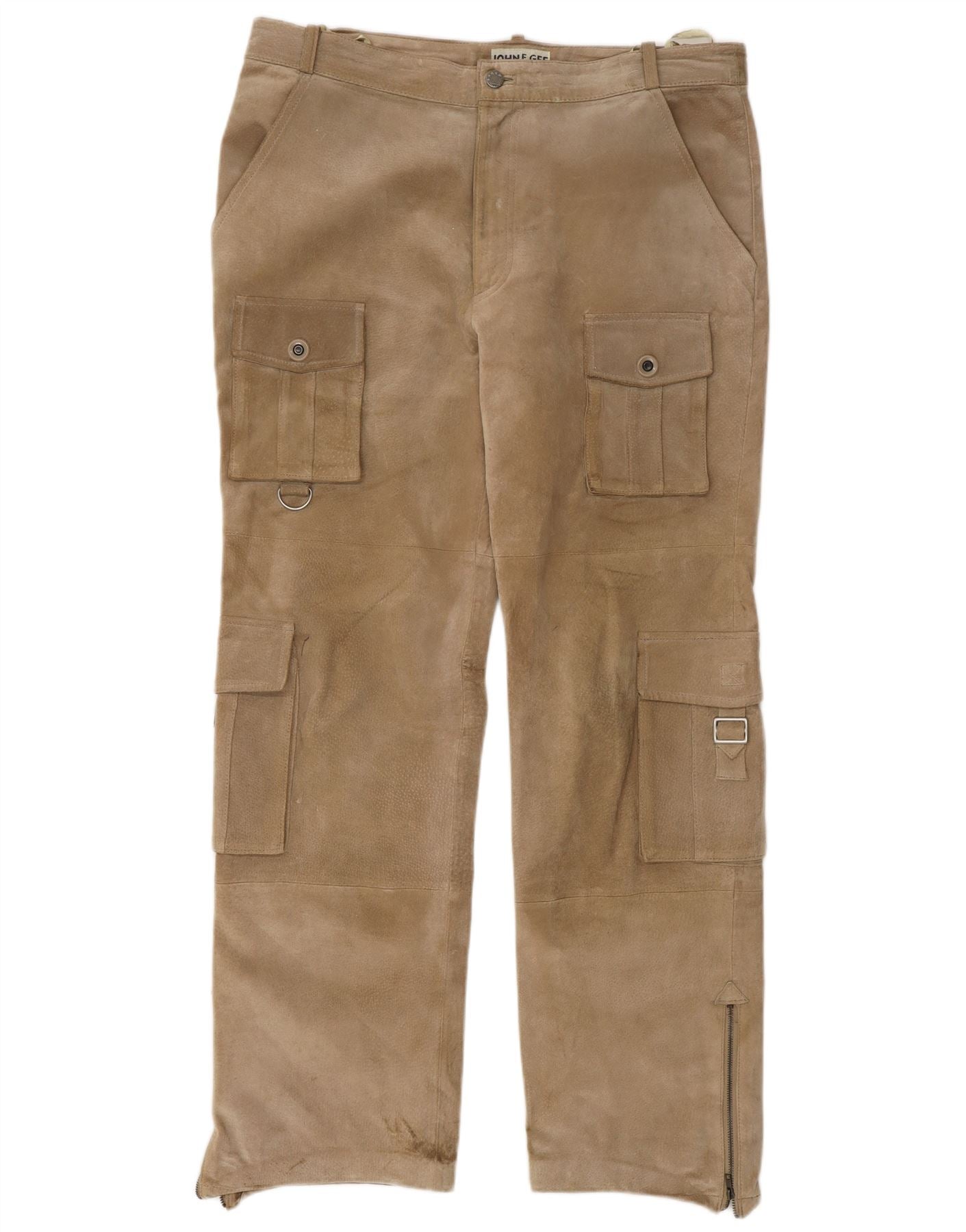 TRUSSARDI Mens Straight Chino Trousers IT 50 Large W34 L34 Beige Pinstripe