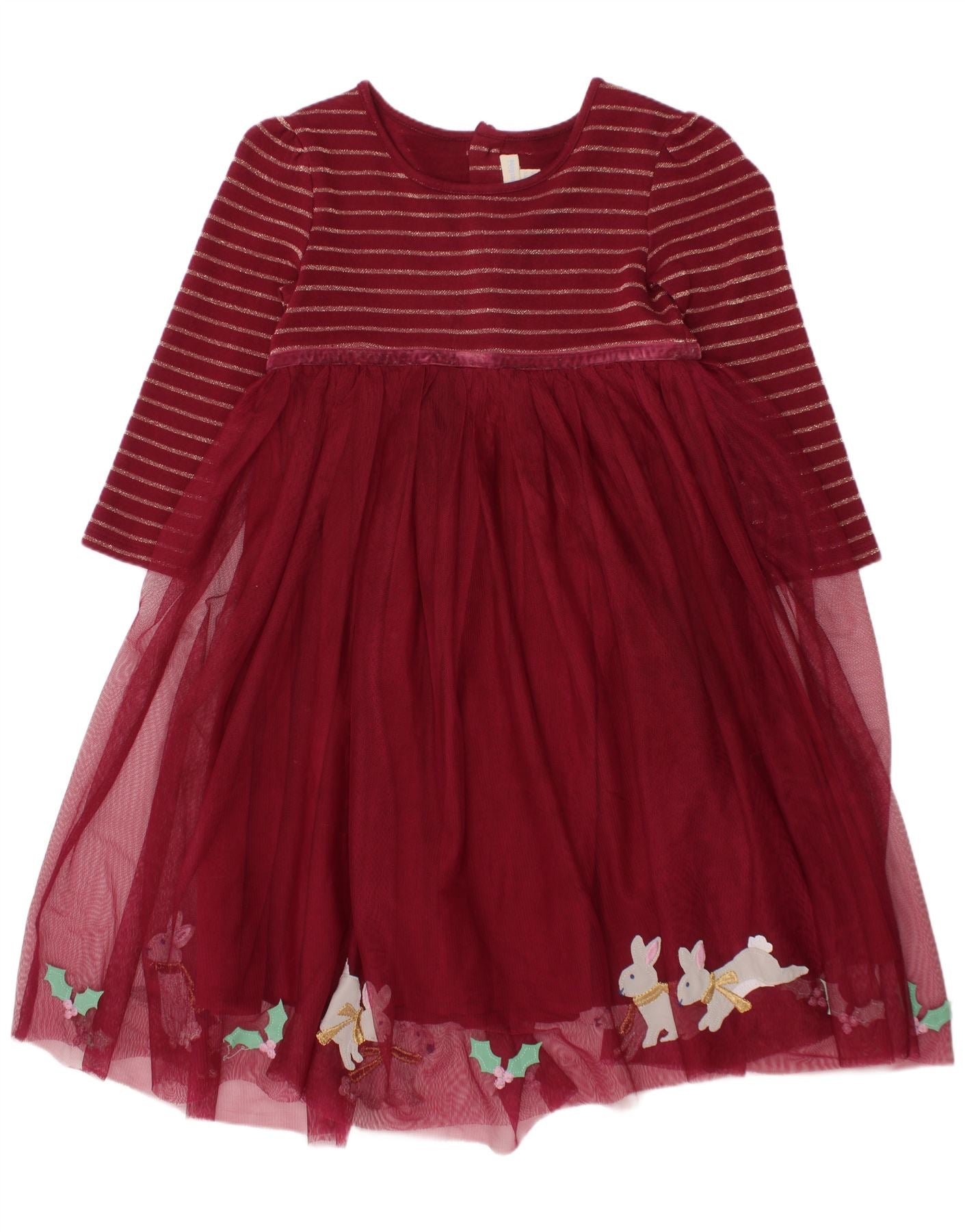 JOJO MAMAN BEBE Girls Tutu Dress 5-6 Years Burgundy Striped Cotton