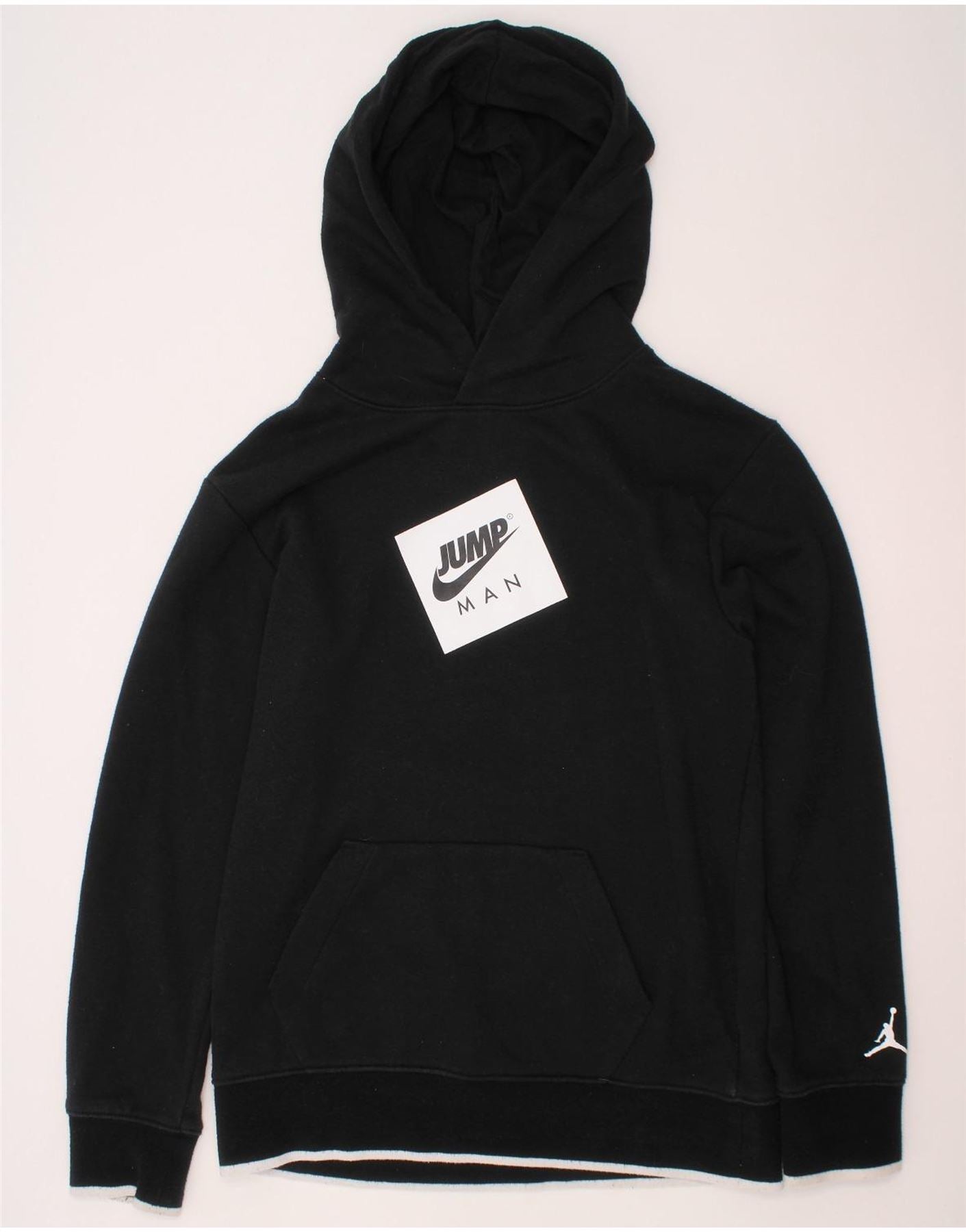 JORDAN Boys Graphic Hoodie Jumper 12-13 Years Large Black Cotton