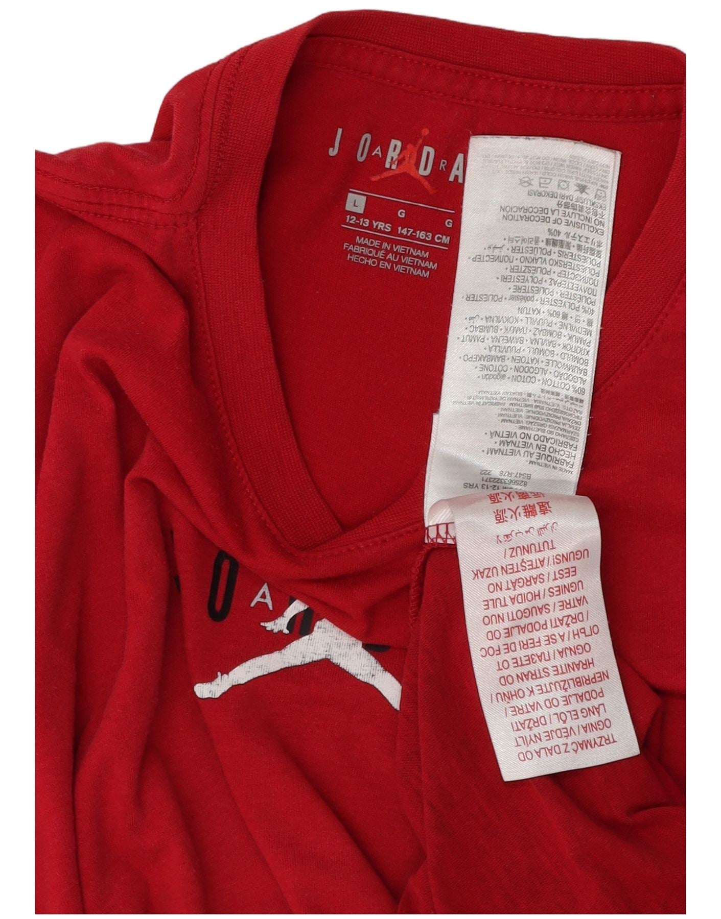 JORDAN Boys Graphic T-Shirt Top 12-13 Years Large Red Colourblock Cotton