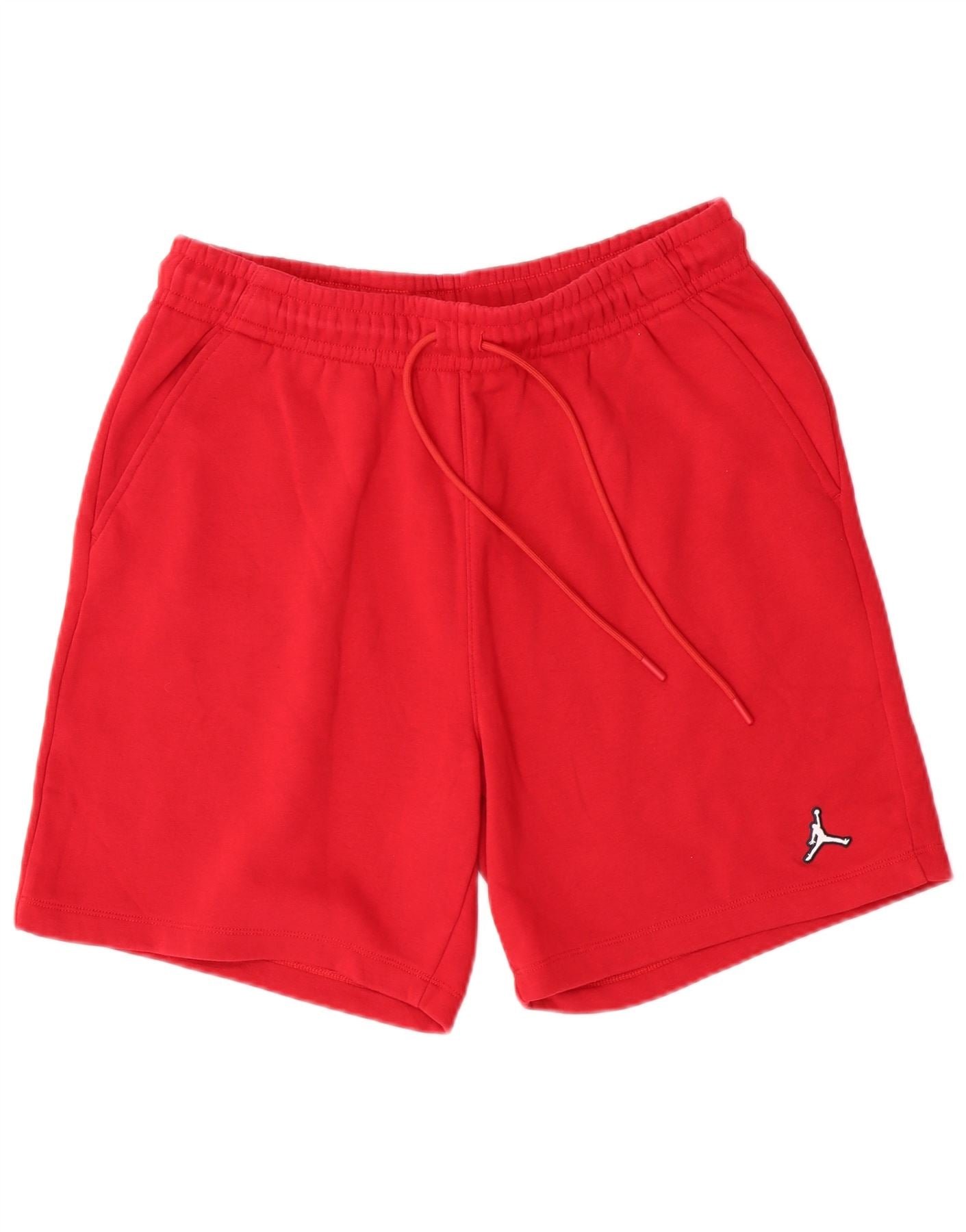 - AI Description: This Jordan mens casual shorts are crafted from a comfortable red cotton blend fabric. The jersey knit offers a soft texture. An elasticated waist with a drawstring closure ensures an adjustable, regular fit. Side pockets provide practical storage. A subtle embroidered logo adds a signature brand detail. These shorts are ideal for comfort and sports style.