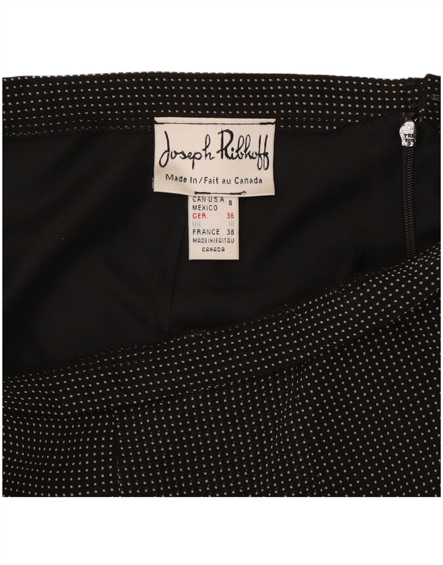 - AI Description: This Joseph Ribkoff womens Ruffle Skirt is crafted from delicate black chiffon. It features a playful polka dot pattern. The mini length and asymmetric design create a modern silhouette. Ruffle accents add dynamic movement. A zip closure ensures a smooth fit. The regular fit offers comfortable wear.