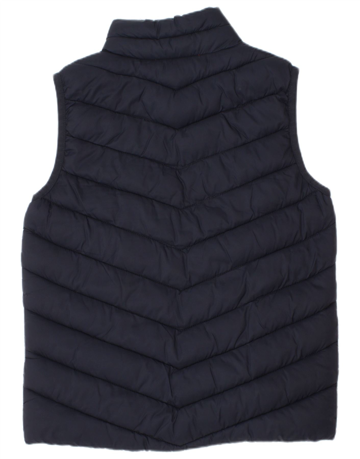 - AI Description: This Joules girls waistcoat is crafted from durable polyamide with a padded, quilted finish. It features a classic navy blue exterior, reversing to a vibrant orange lining. The sleeveless design and high neck offer warmth without bulk. A full zip closure ensures a secure fit. Practical pockets are included. Its regular fit provides comfortable layering. This packable, reversible style is ideal for versatile wear.