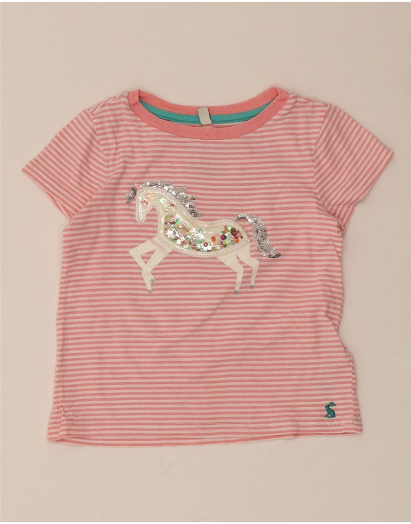 JOULES Girls Unicorn Graphic T-Shirt Top 4-5 Years Pink Striped Cotton