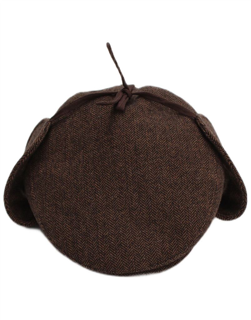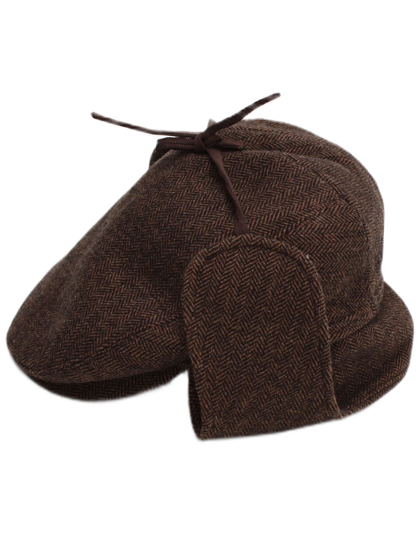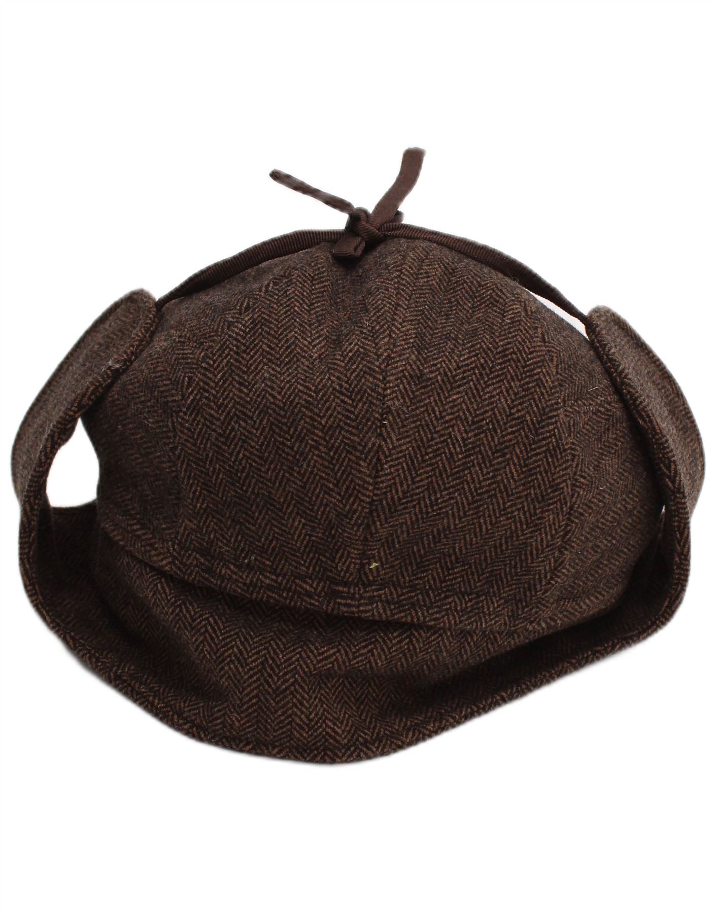 JOULES Mens Ear Flap Trapper Hat Small Brown Herringbone Wool Classic