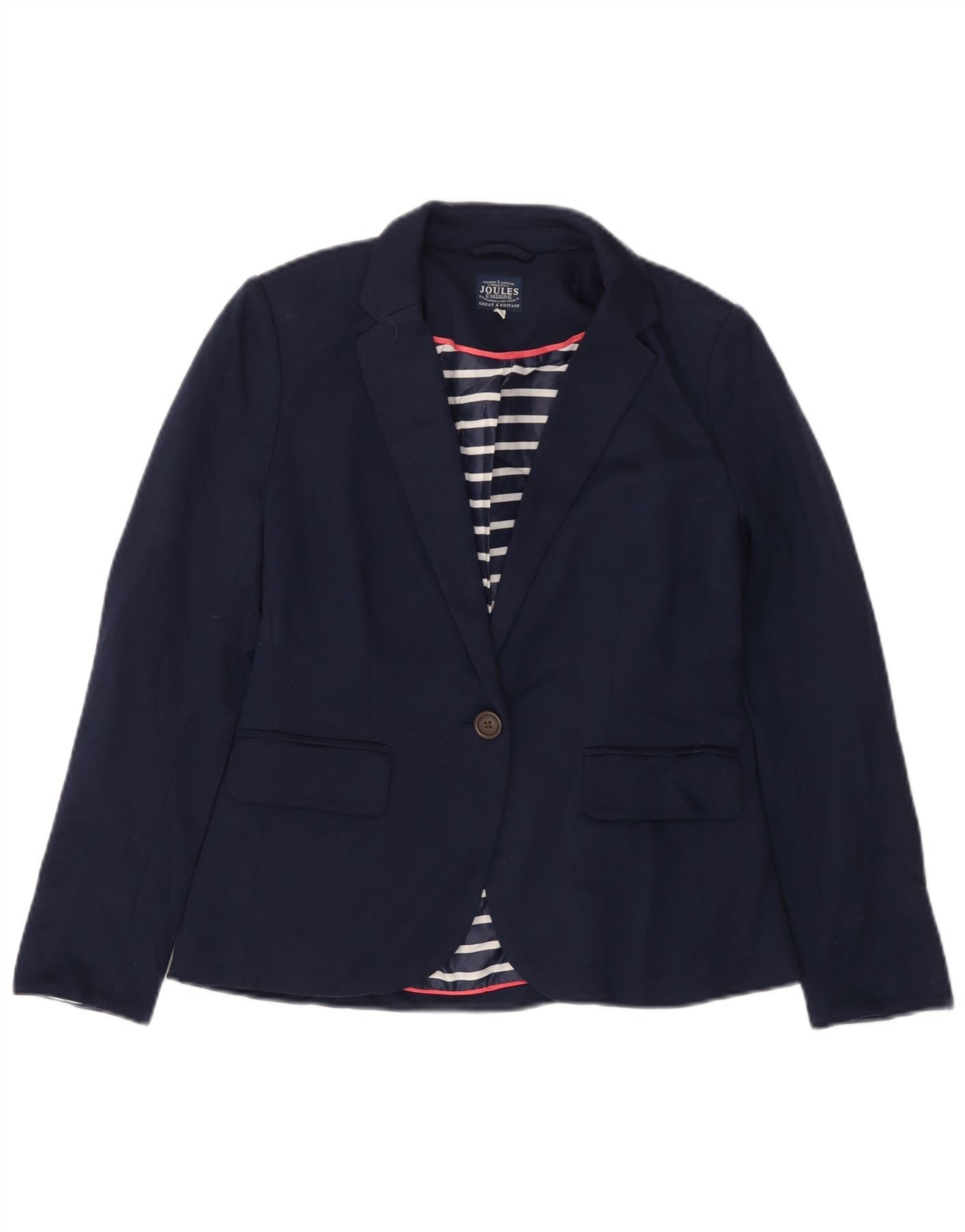 JOULES Womens 1 Button Blazer Jacket UK 10 Small Navy Blue Cotton