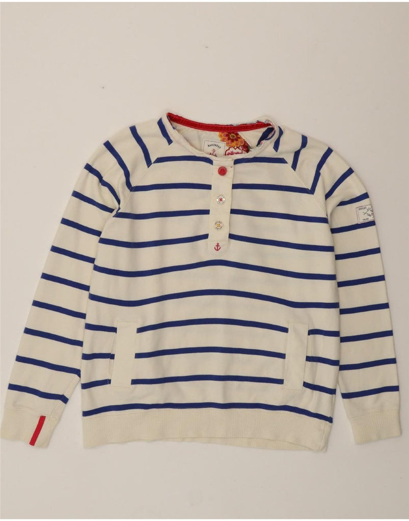 JOULES Womens Button Neck Sweatshirt Jumper UK 14 Large White Striped