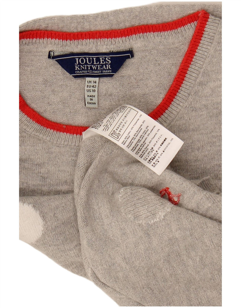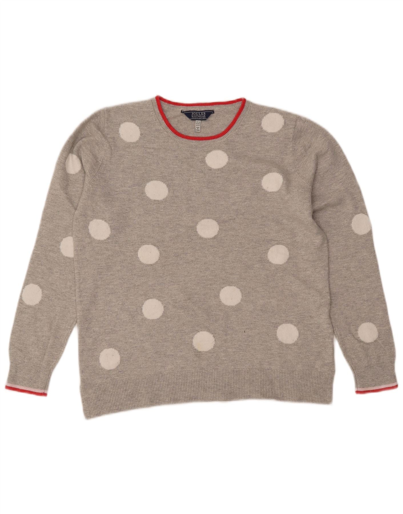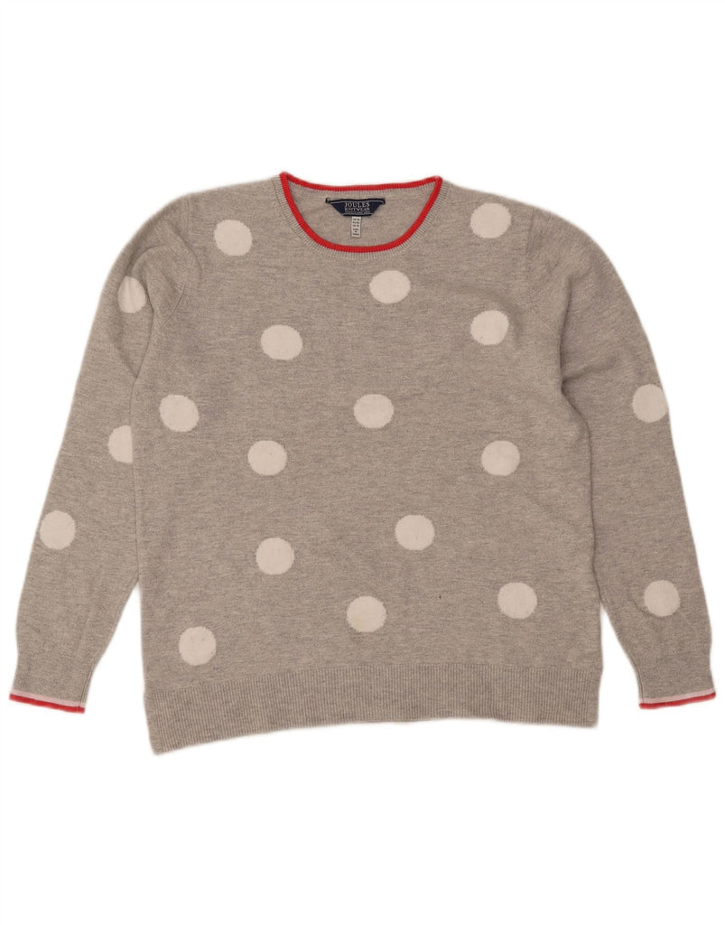 JOULES Womens Crop Crew Neck Jumper Sweater UK 14 Large Grey Spotted