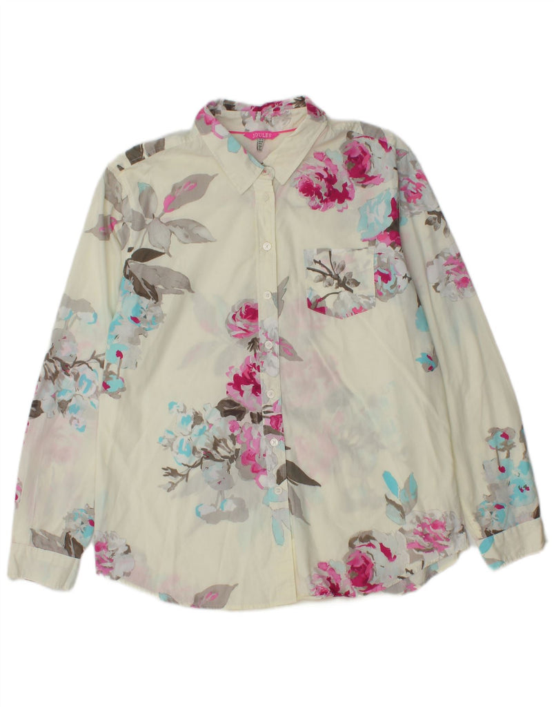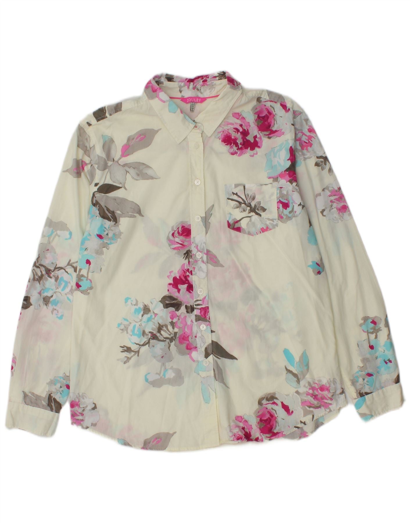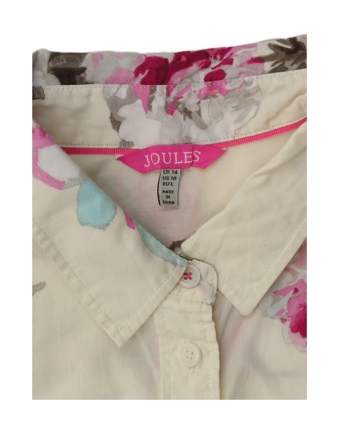 JOULES Womens See Through Shirt UK 14 Medium Off White Floral Cotton