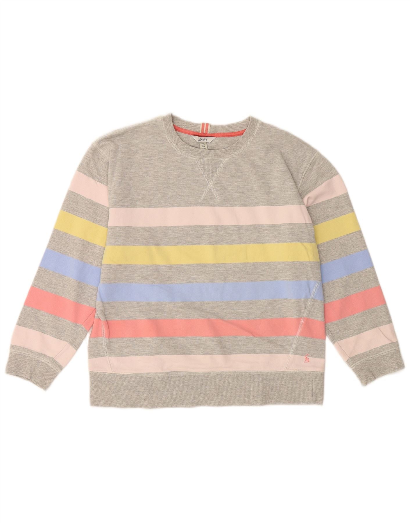 JOULES Womens Sweatshirt Jumper UK 12 Medium Grey Striped Cotton