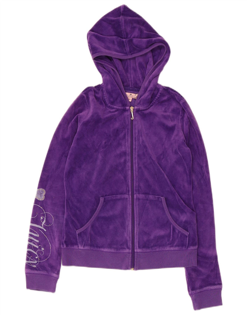 JUICY COUTURE Girls Graphic Zip Hoodie Sweater 13-14 Years Purple Cotton