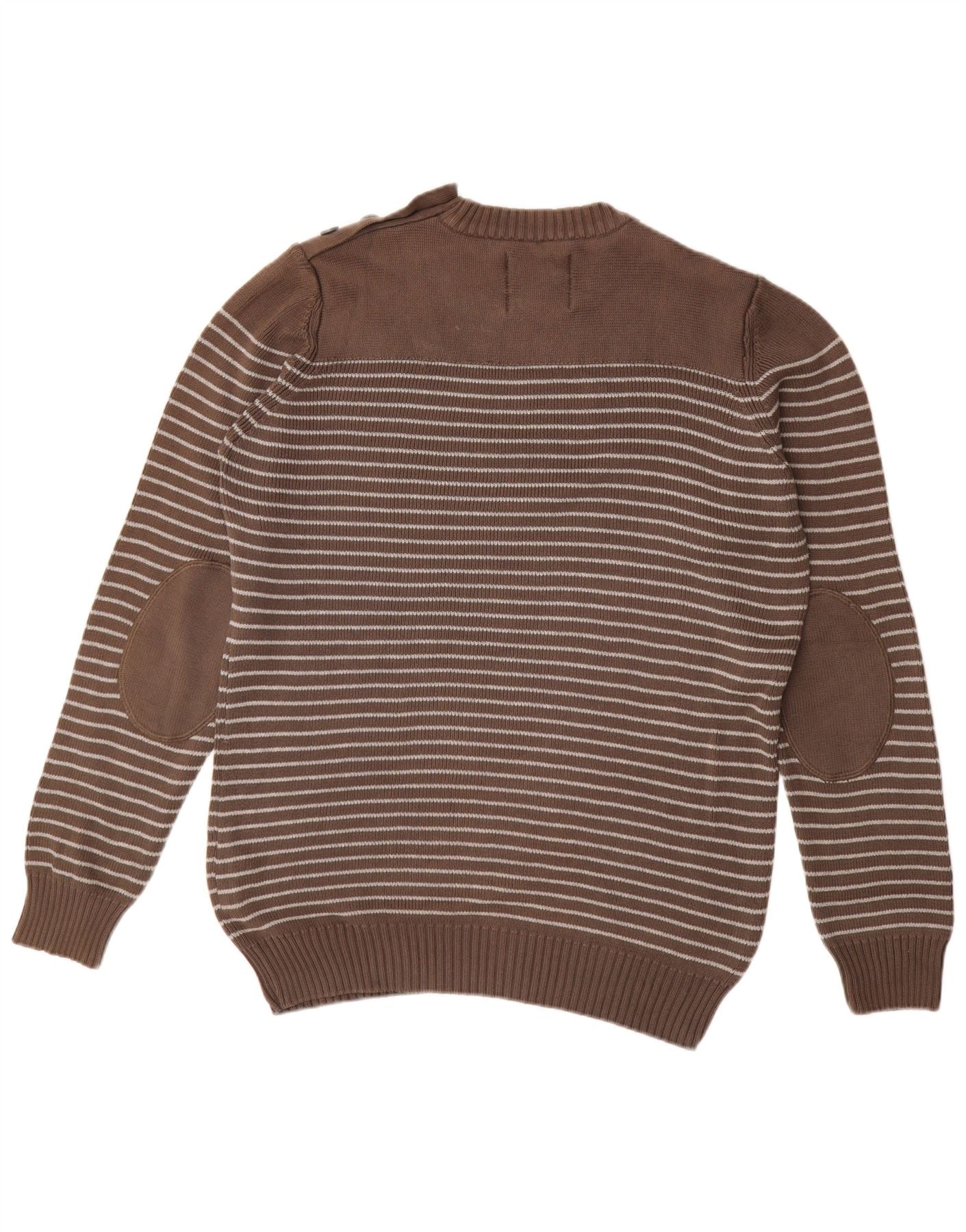 JULES Mens Crew Neck Jumper Sweater Large Brown Striped Cotton