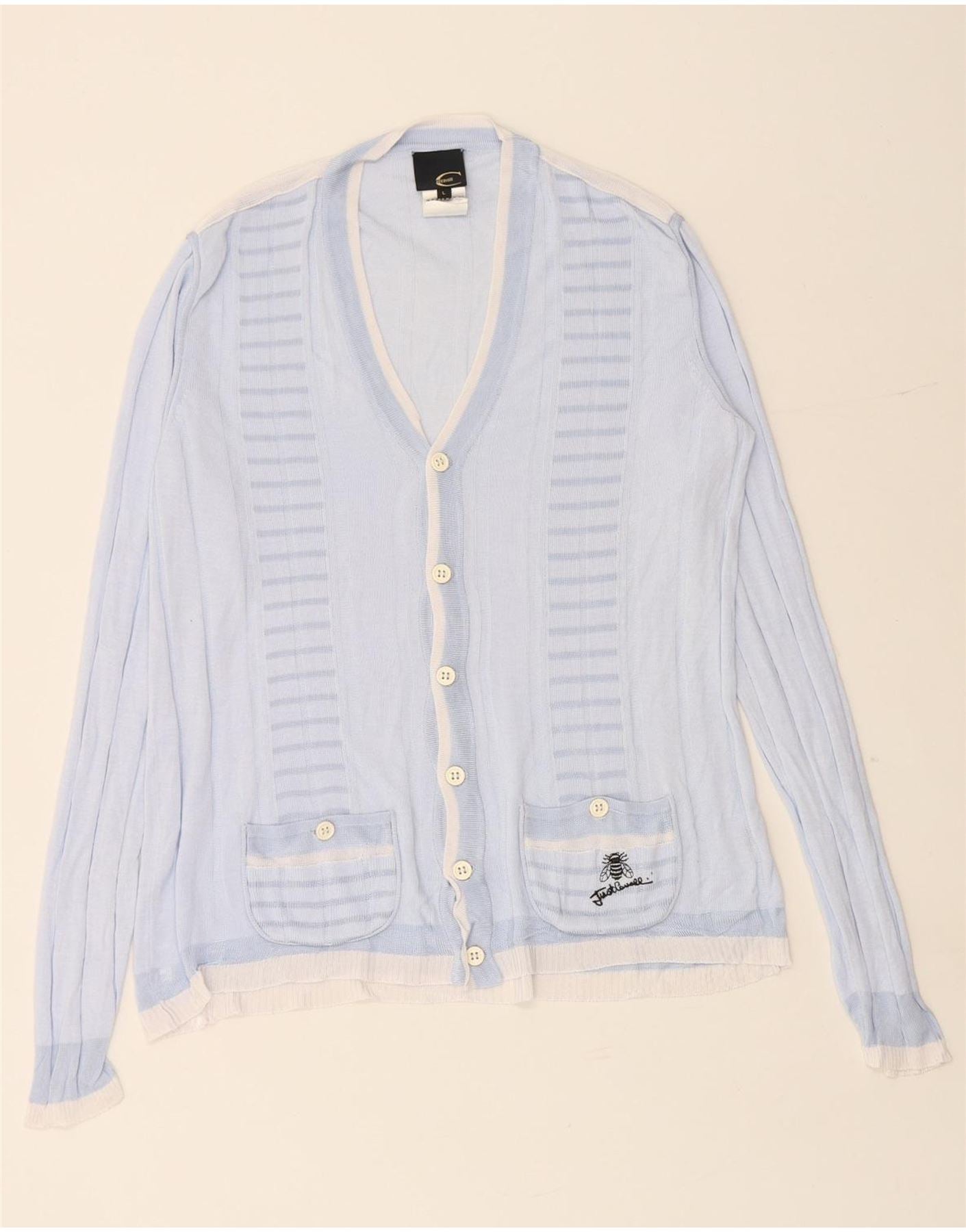 JUST CAVALLI Womens Cardigan Sweater UK 16 Large Blue Colourblock Viscose