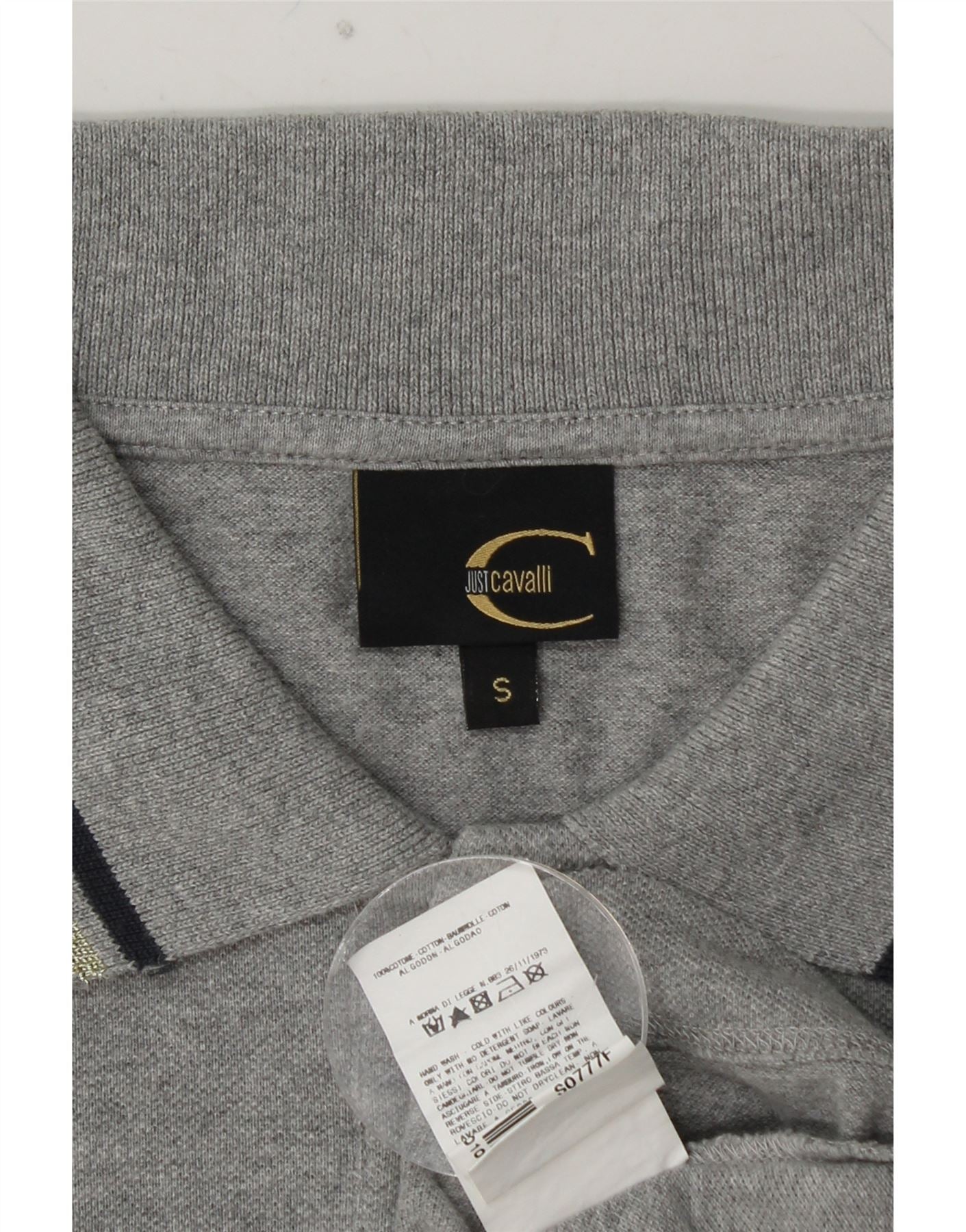 JUST CAVALLI Womens Graphic Long Sleeve Polo Shirt UK 10 Small Grey Cotton