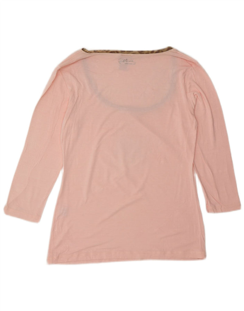 JUST CAVALLI Womens Graphic Top 3/4 Sleeve IT 46 Large Pink Viscose