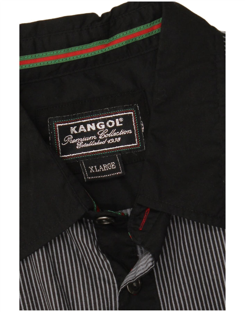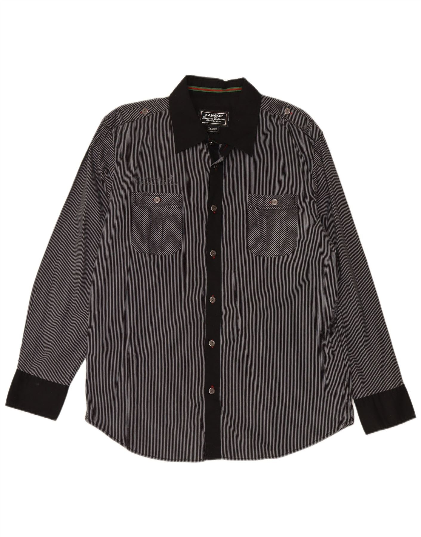 KANGOL Mens Military Shirt XL Navy Blue Pinstripe Cotton