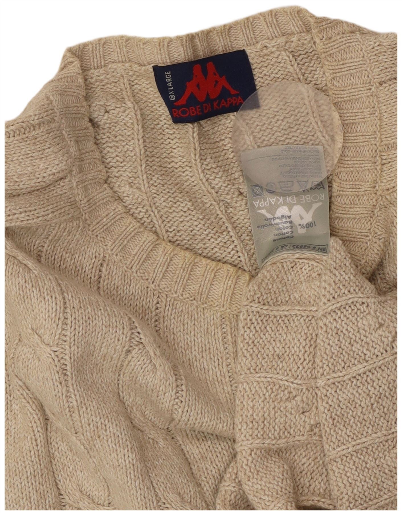 KAPPA Mens Crew Neck Jumper Sweater XL Beige Cotton