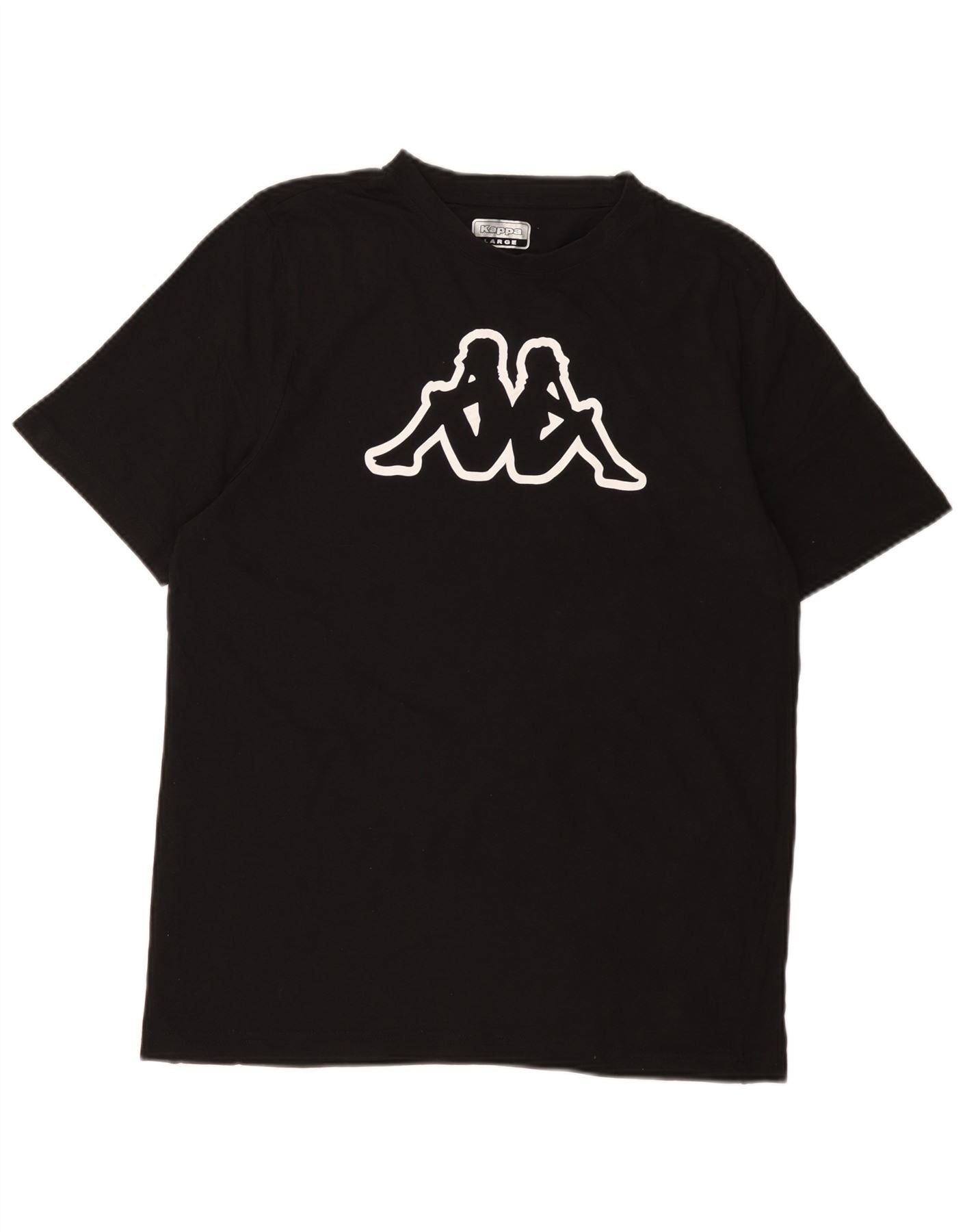 KAPPA Mens Graphic T-Shirt Top Large Black Cotton