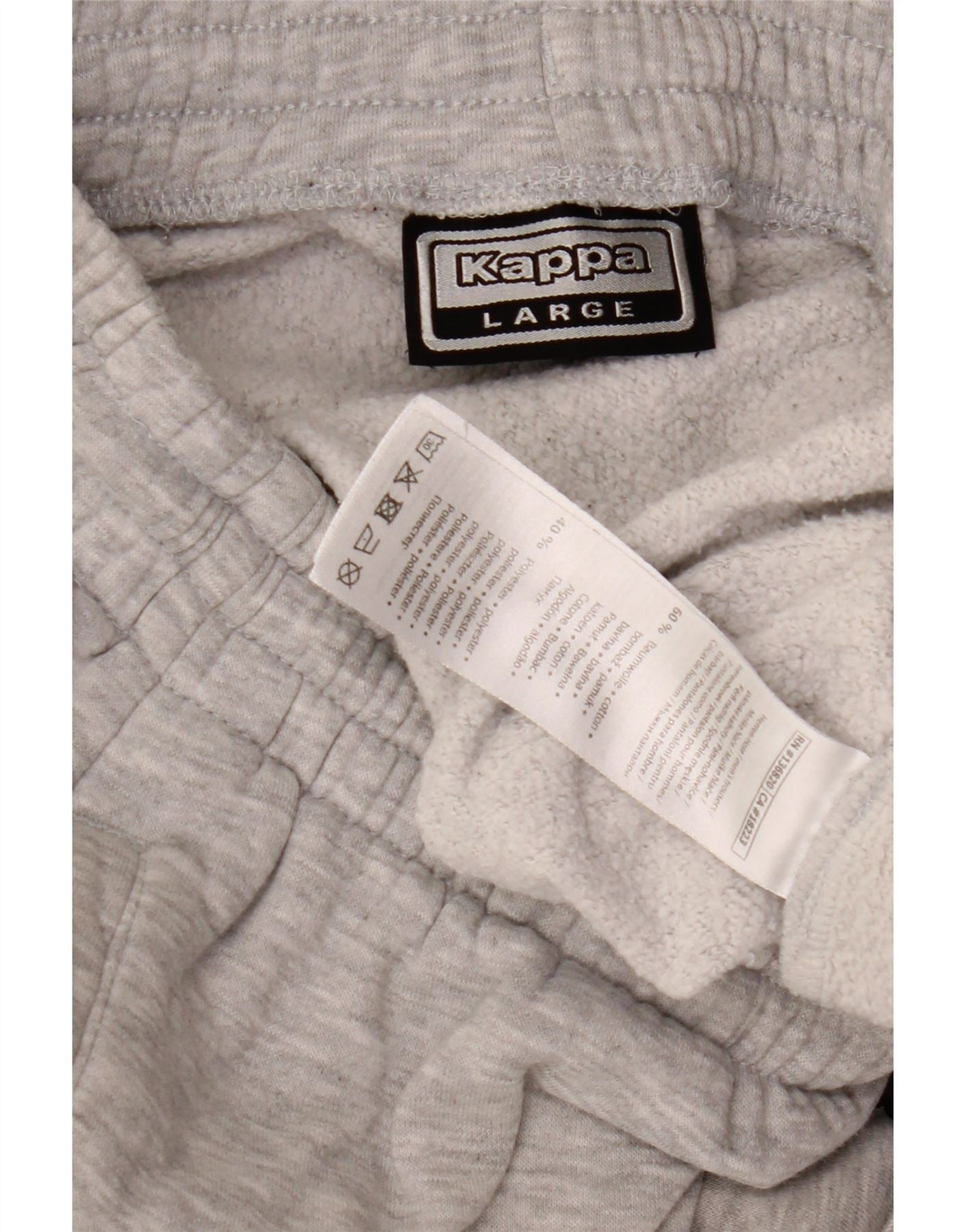 - AI Description: This Kappa mens tracksuit trousers joggers are crafted from a soft grey cotton blend fleece fabric. They feature a comfortable elasticated waist with a practical drawstring closure. The relaxed fit ensures ease of movement. Cuffed ankles provide a neat finish. Side pockets offer functionality. A prominent Kappa logo adds a signature athletic touch. These joggers are ideal for sports or casual wear.