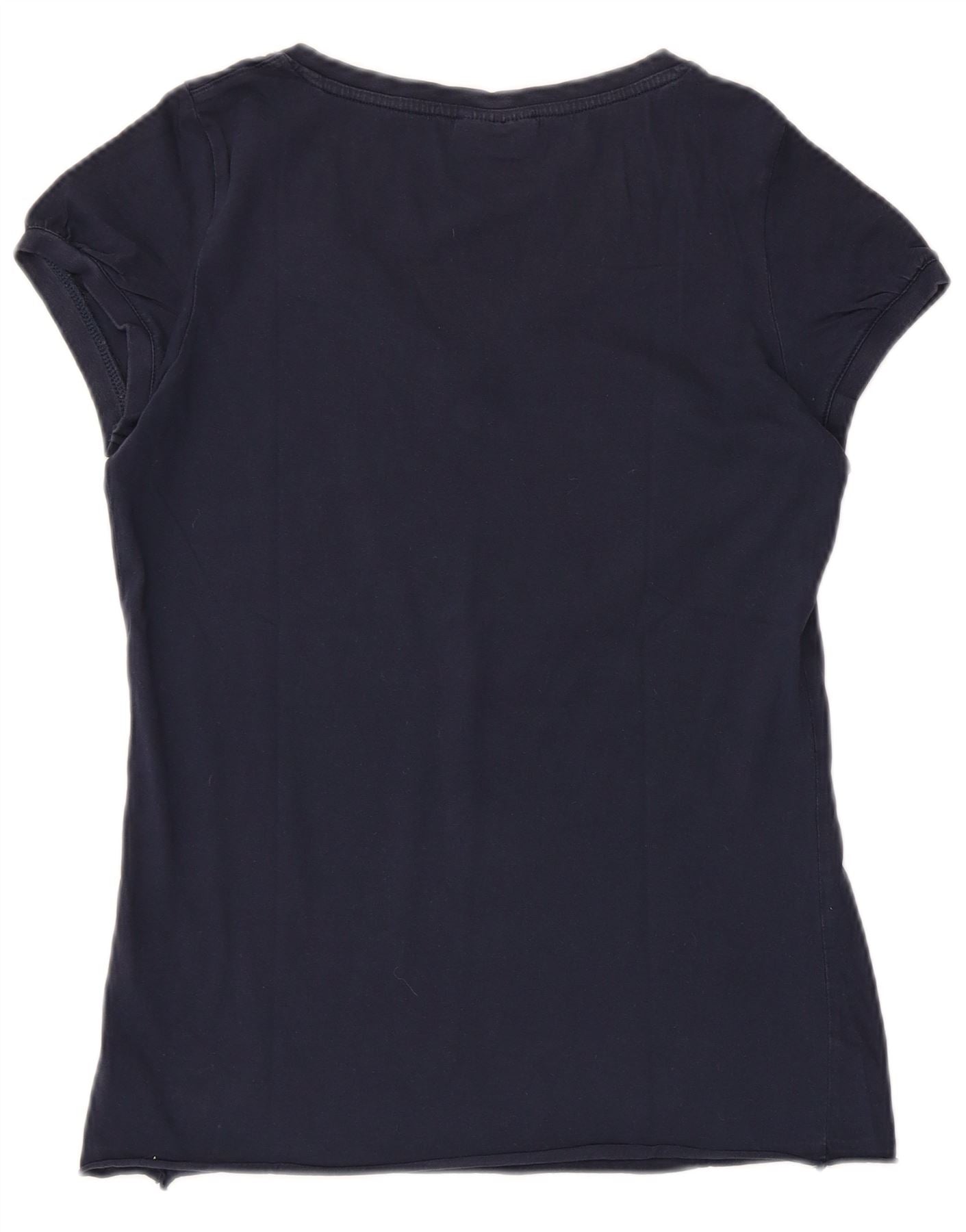 KAPPA Womens Graphic T-Shirt Top UK 12 Medium Navy Blue Cotton