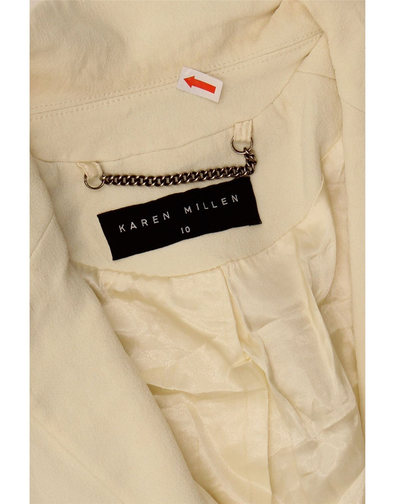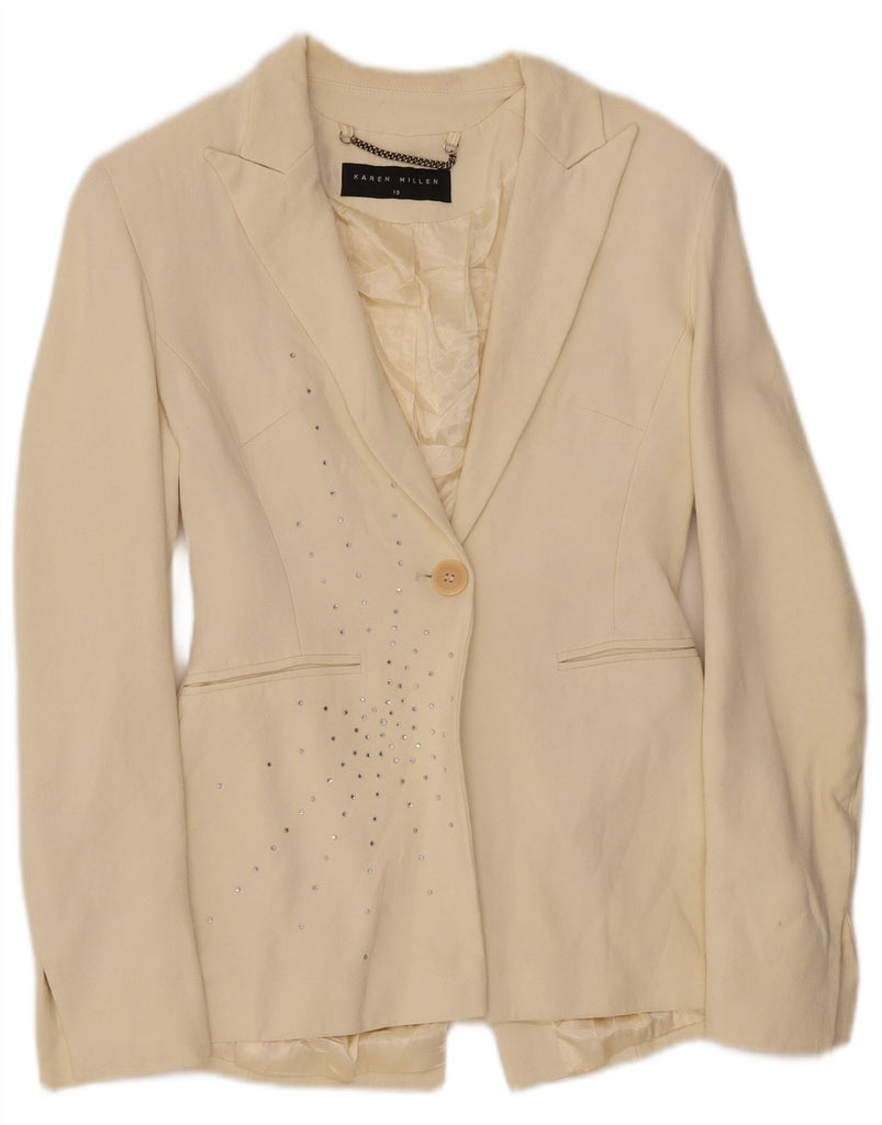 KAREN MILLEN Womens 1 Button Blazer Jacket UK 10 Small Beige Acetate