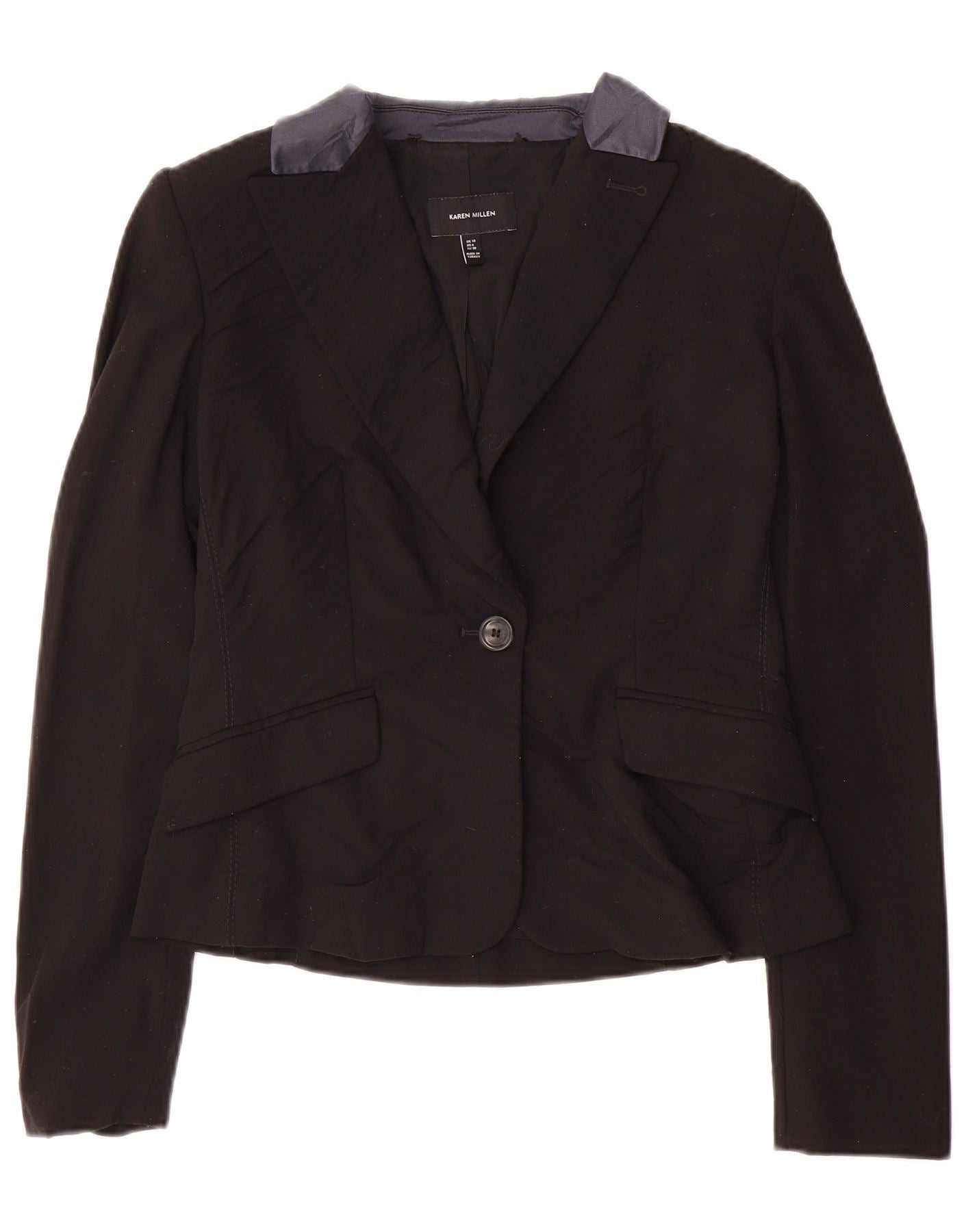 Karen Millen Womens 1 Button Blazer Jacket UK 10 Small Black Wool