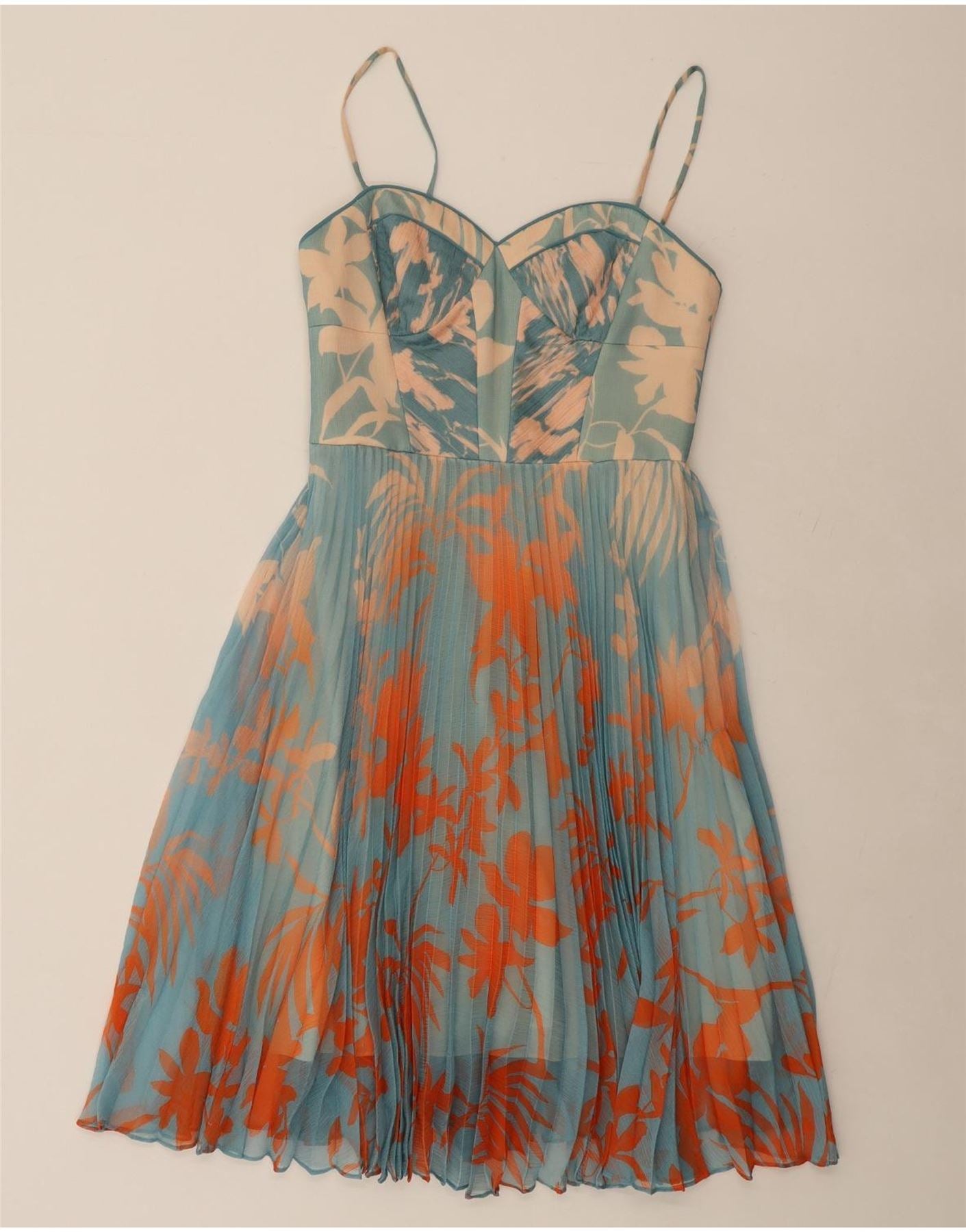 KAREN MILLEN Womens A-Line Dress UK 12 Medium Blue Floral Polyester