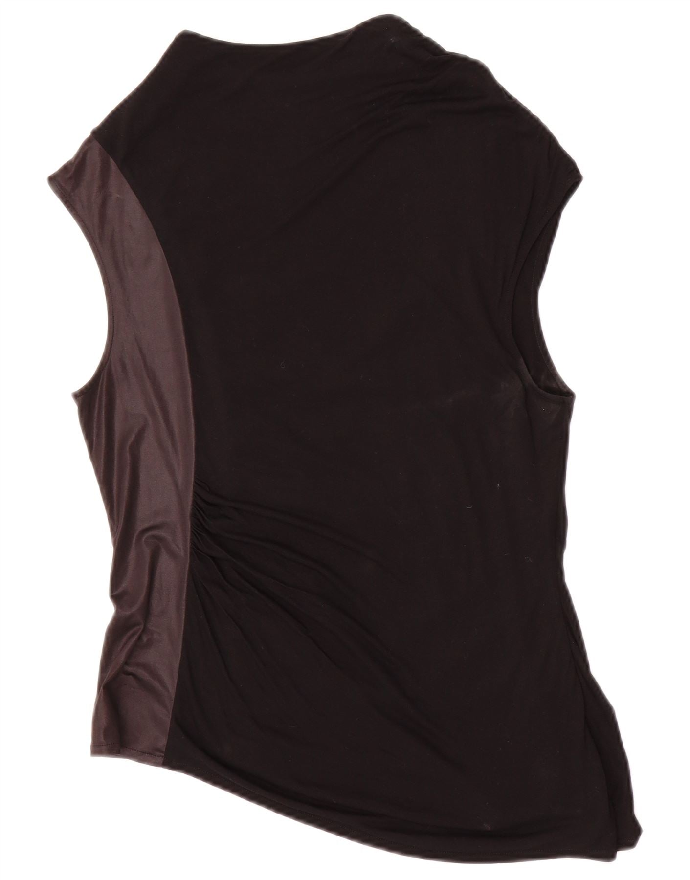 KAREN MILLEN Womens Blouse Top UK 14 Medium Black Colourblock Viscose