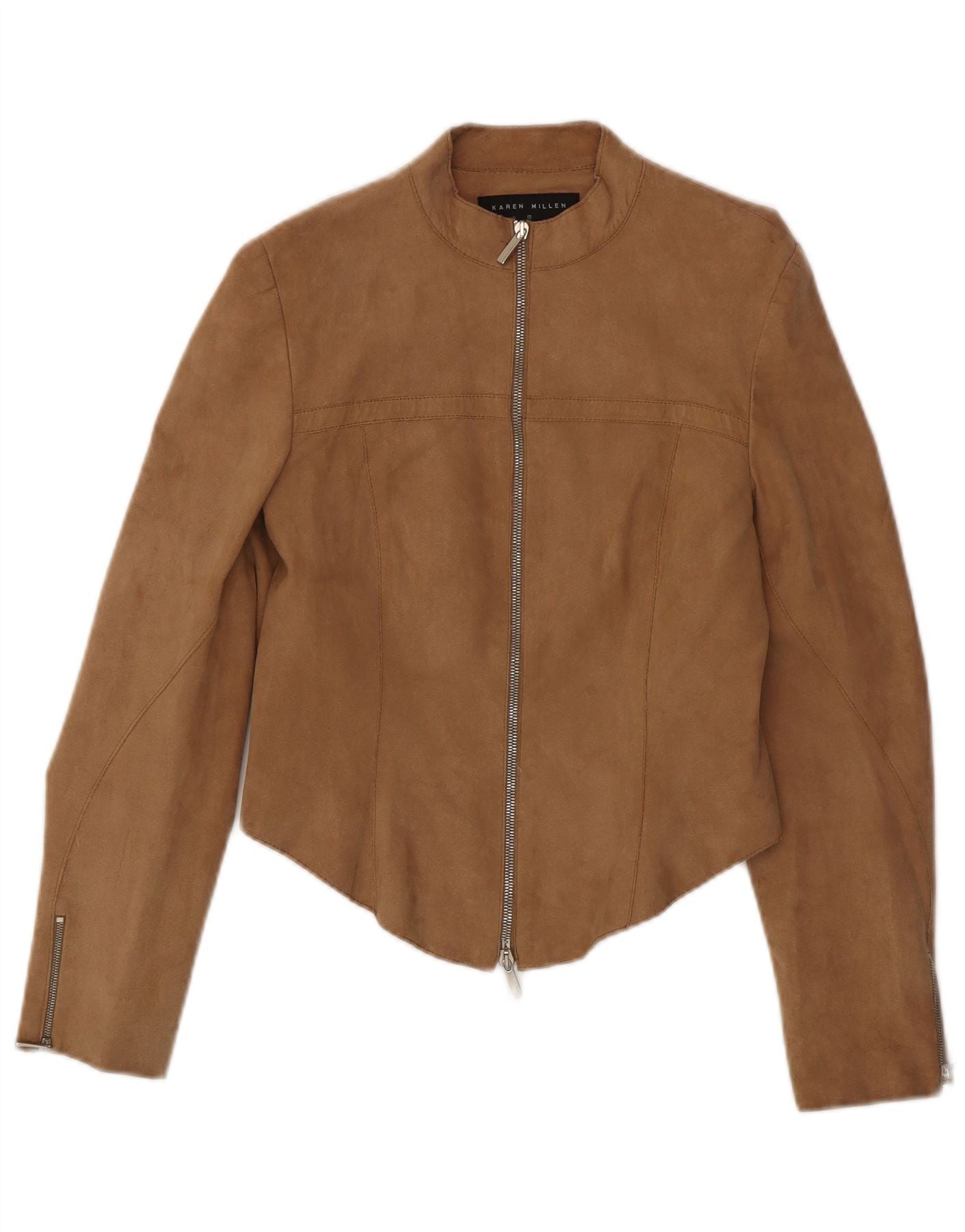 KAREN MILLEN Womens Crop Suede Jacket UK 12 Medium Brown