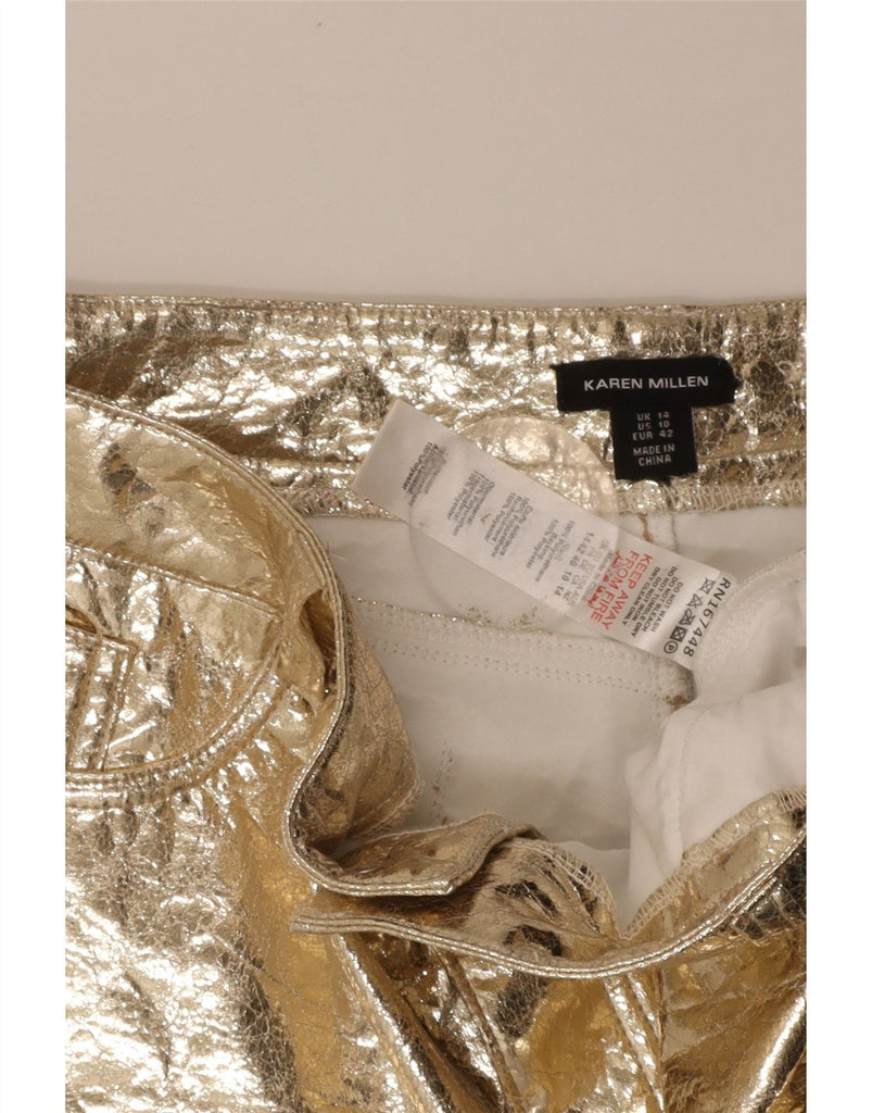 KAREN MILLEN Womens Faux Leather Trousers UK 14 Large W32 L28 Gold