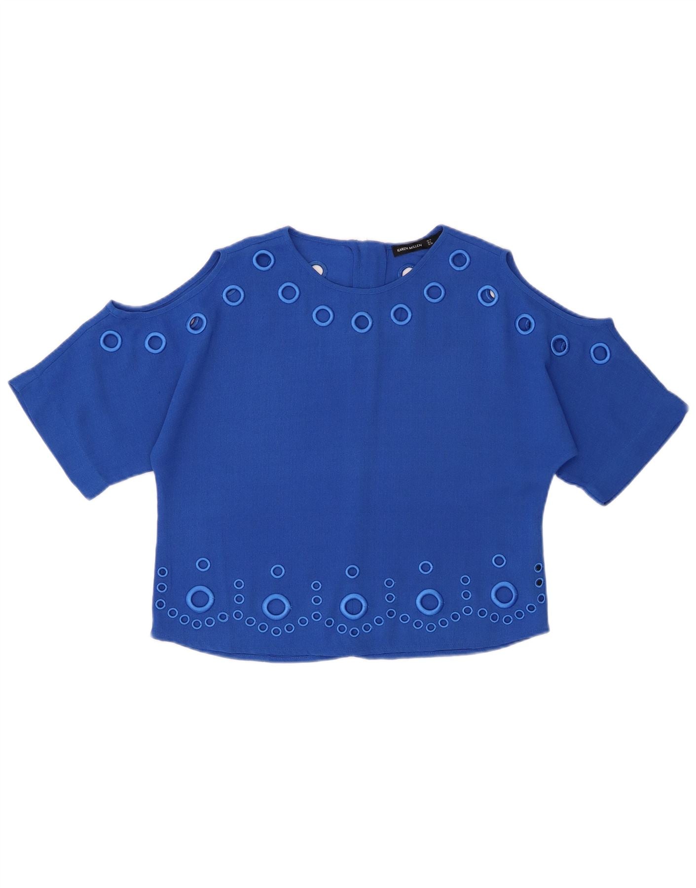KAREN MILLEN Womens Oversized Crop Blouse Top UK 10 Small Blue Polyester