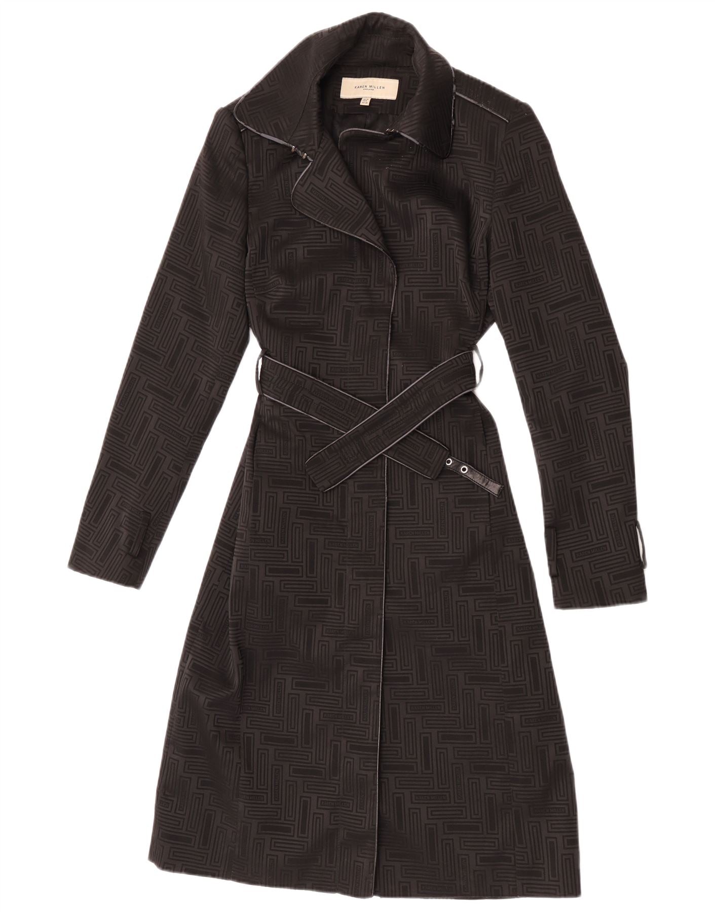 Karen Millen Womens Trench Coat UK 10 Small Black Geometric Polyester