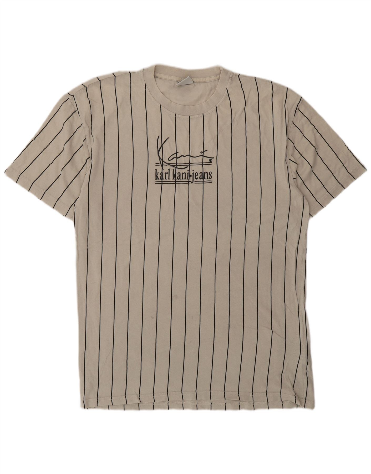 KARL KANI Mens Graphic T-Shirt Top Small Beige Striped Cotton