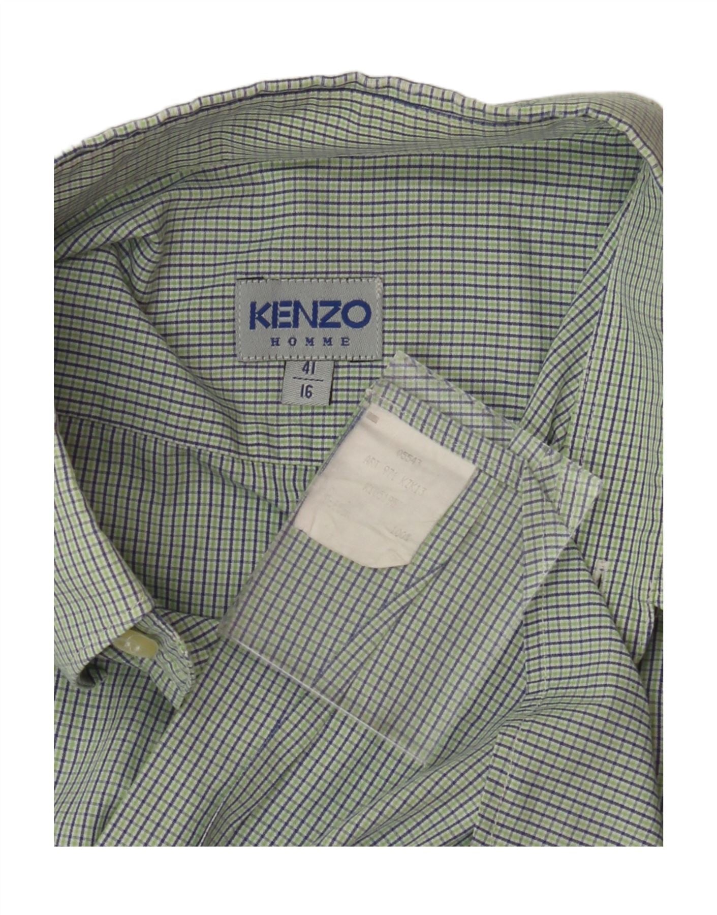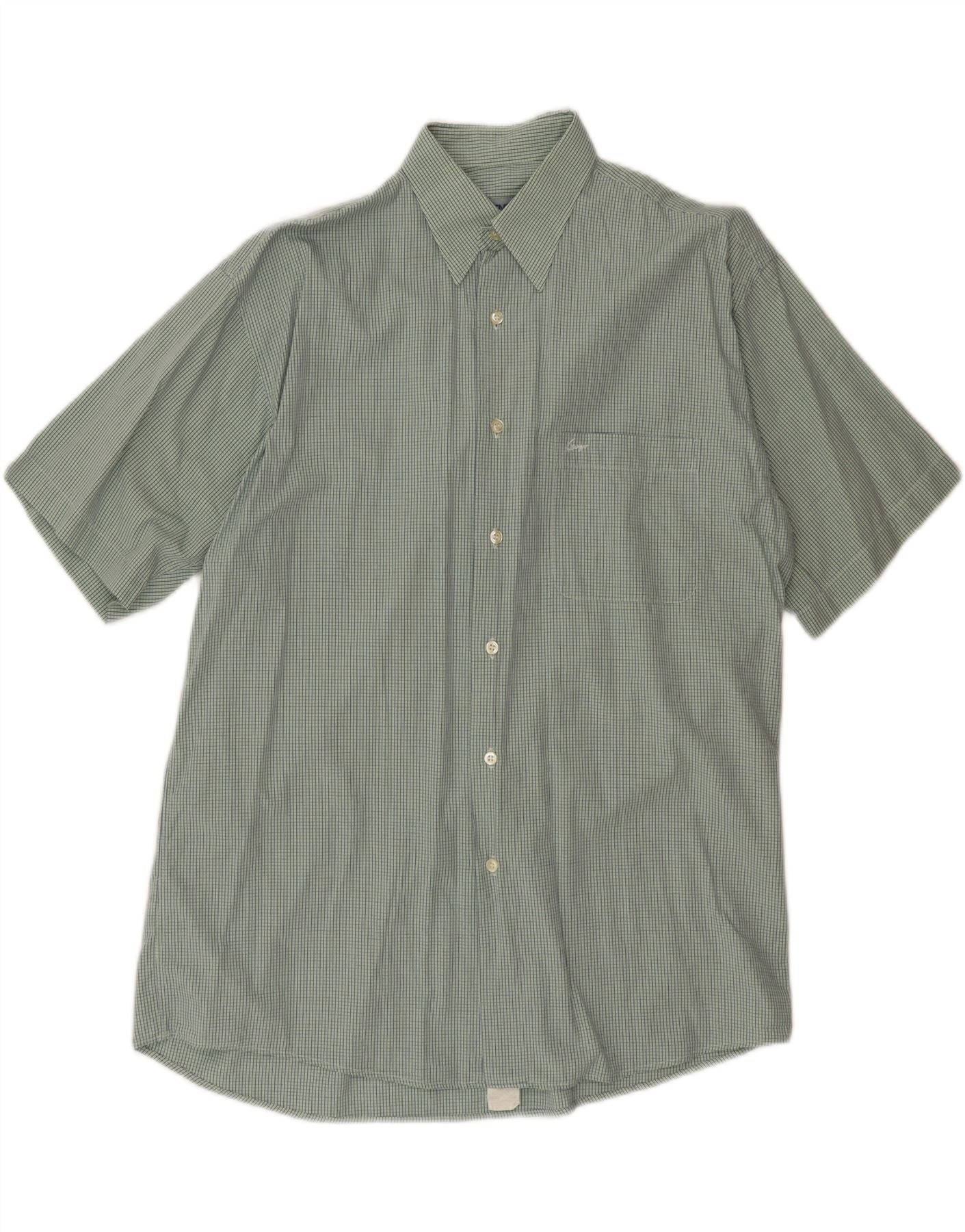KENZO Mens Short Sleeve Shirt Size 41/16 Large Green Check Cotton
