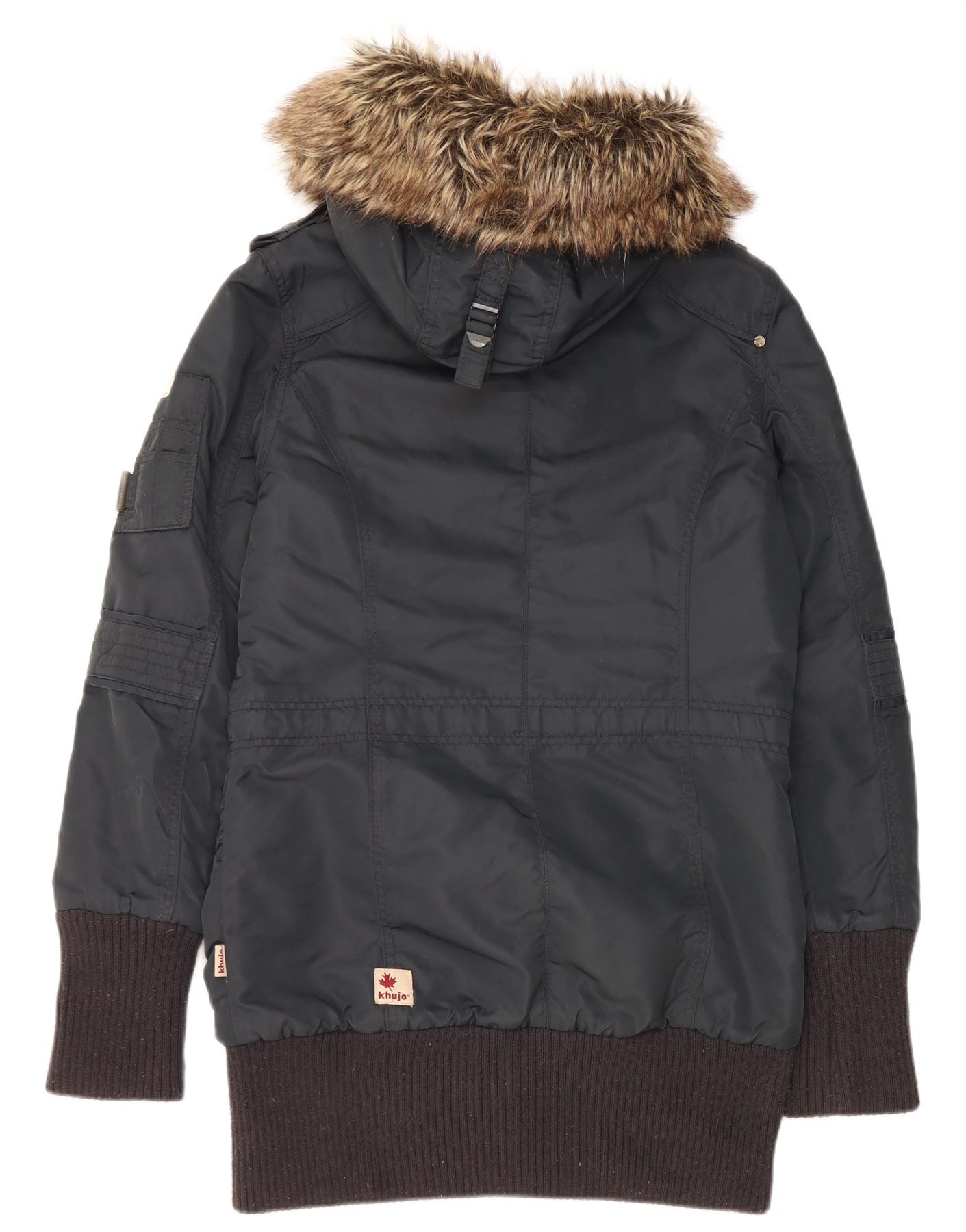 KHUJO Mens Hooded Parka Jacket UK 38 Medium Navy Blue Nylon