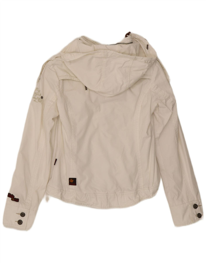KHUJO Womens Graphic Hooded Military Jacket UK 14 Large Off White Cotton