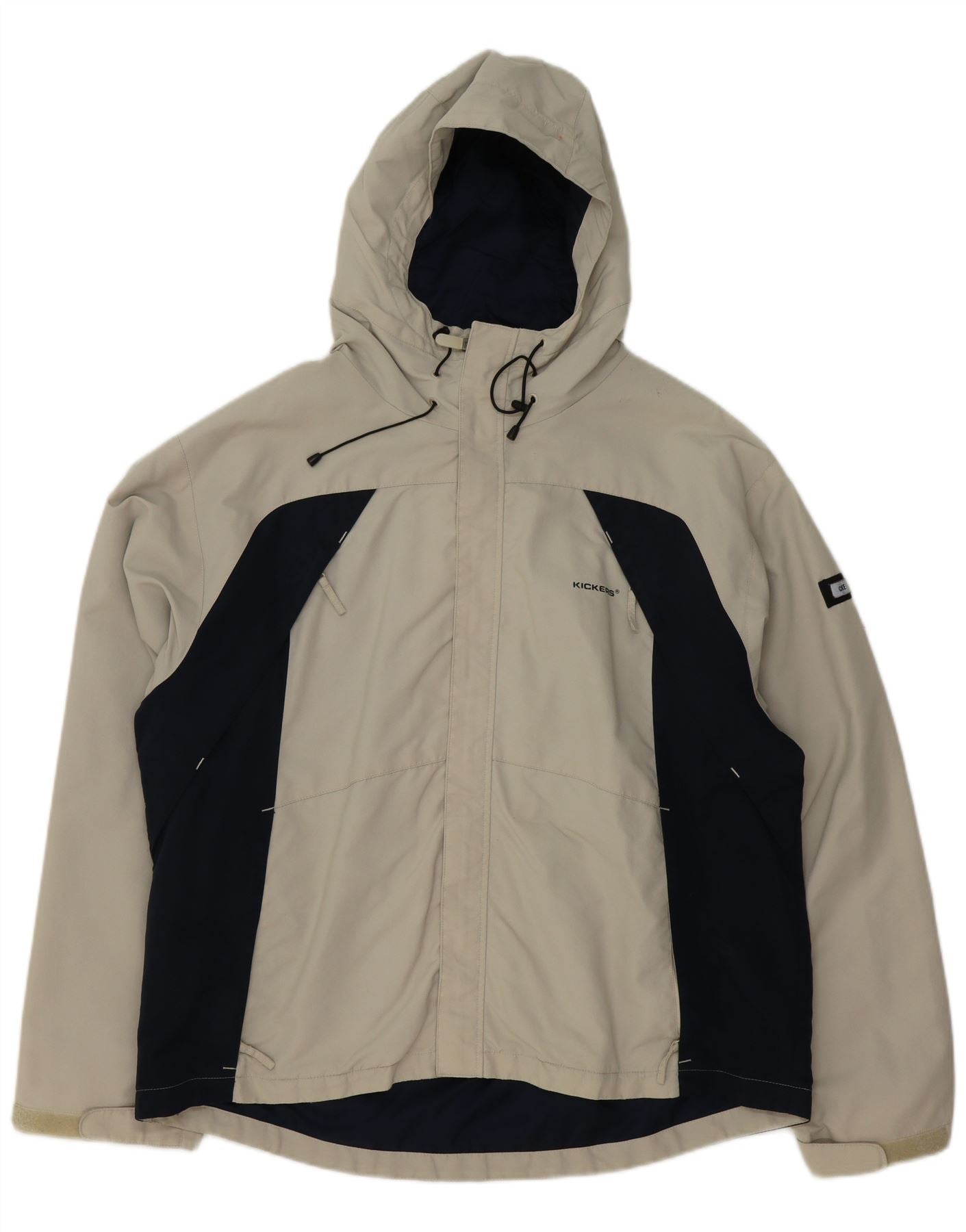 KICKERS Mens Hooded Windbreaker Jacket UK 40 Large Beige Colourblock Nylon