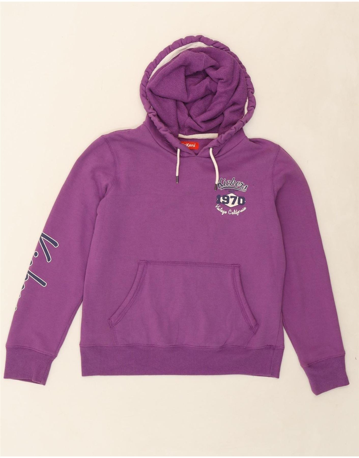 KICKERS Womens Graphic Hoodie Jumper UK 16 Large Purple Polyester